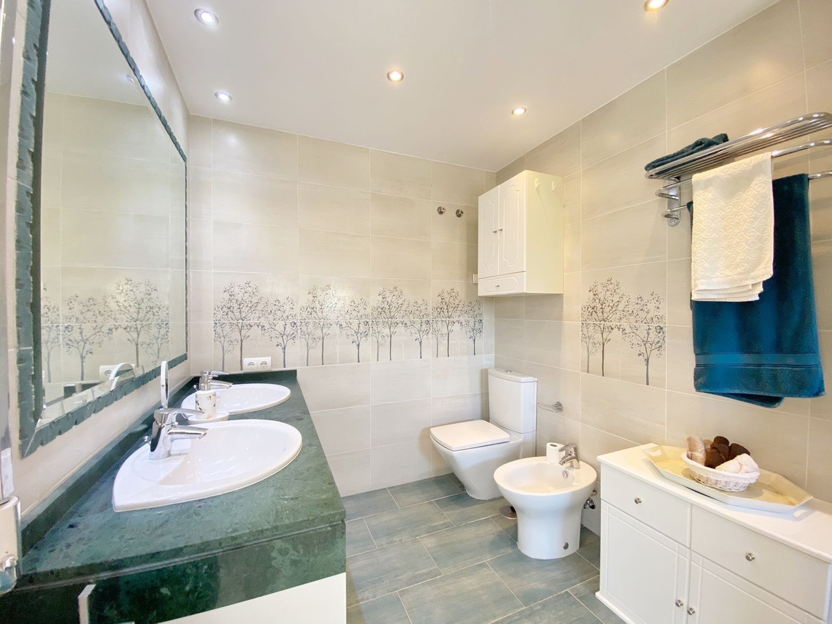 It comprises of a spacious living/dining room with fireplace and direct access to a lovely Southwest facing terrace. The ground floor also has a fully equipped kitchen and a guest toilet. On the upper floor there are 3 bedrooms and 2 bathrooms, one en-suite with access to a private terrace and a staircase that takes you up to the solarium.