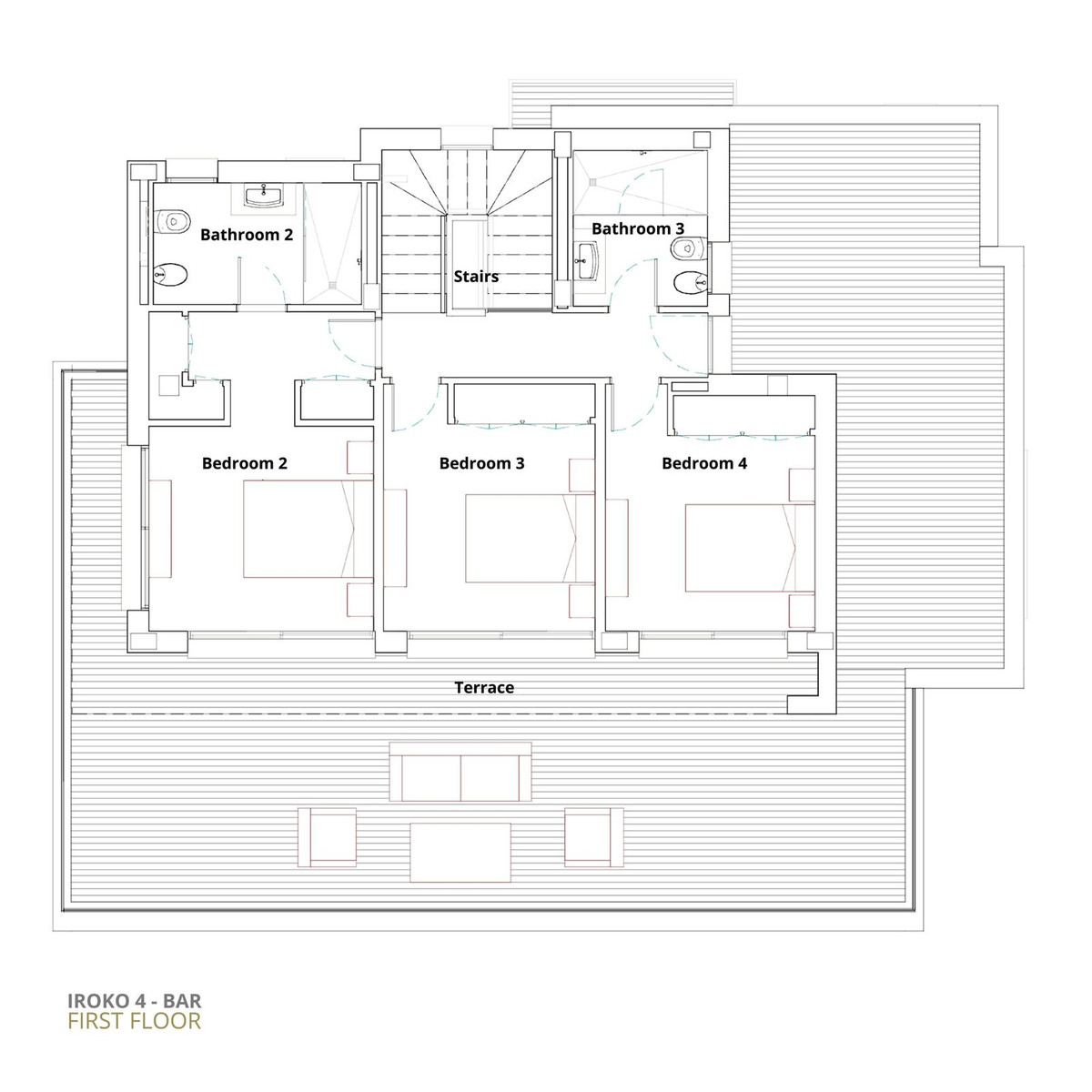 • Three bedrooms with floor-to-ceiling windows and terrace access on the upper floor