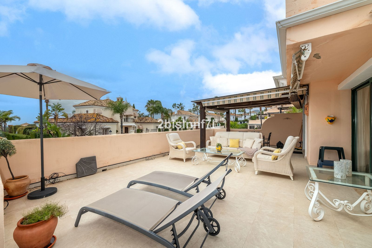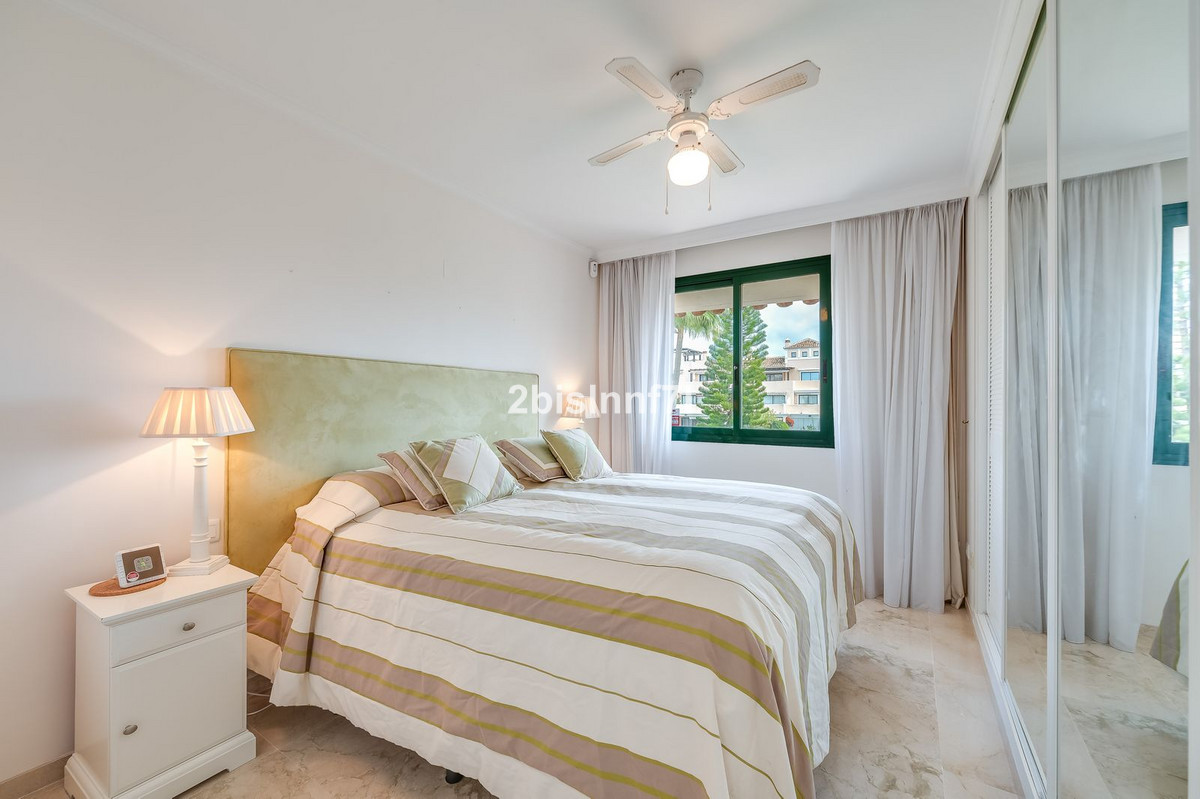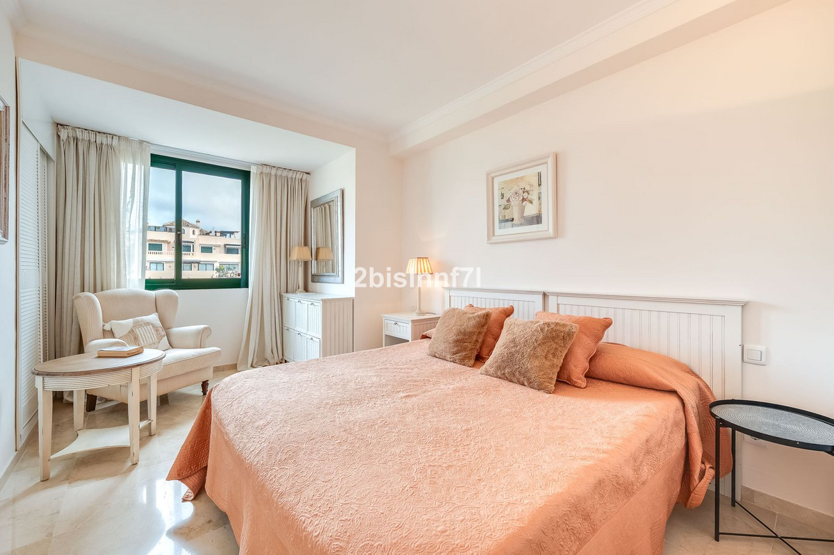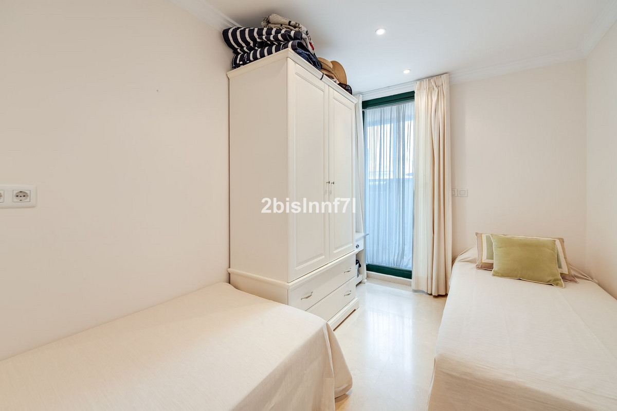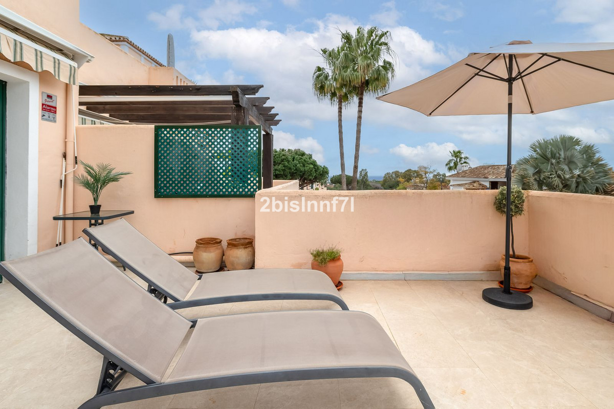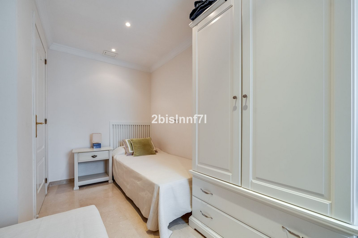 The apartment consists of two generously sized bedrooms and a third smaller one, ideal as a guest room, home office, or children's bedroom. Bedrooms benefits from lovely views of the landscape gardens. The two bathrooms have been renovated and feature underfloor heating for maximum comfort. The kitchen has also been completely renovated with high-end appliances and a modern design. One of the highlights of this property is its spectacular large terrace, with multiple areas to enjoy outdoor living. It features a covered dining space ideal for alfresco meals, a charming chill-out area and a sunbathing zone with longers, all offering beautiful views. Thanks to its excellent orientation, the apartment enjoys sunlight all day long, from 10 AM until sunset. From the terrace you can also enjoy a beautiful sea view on the horizon.