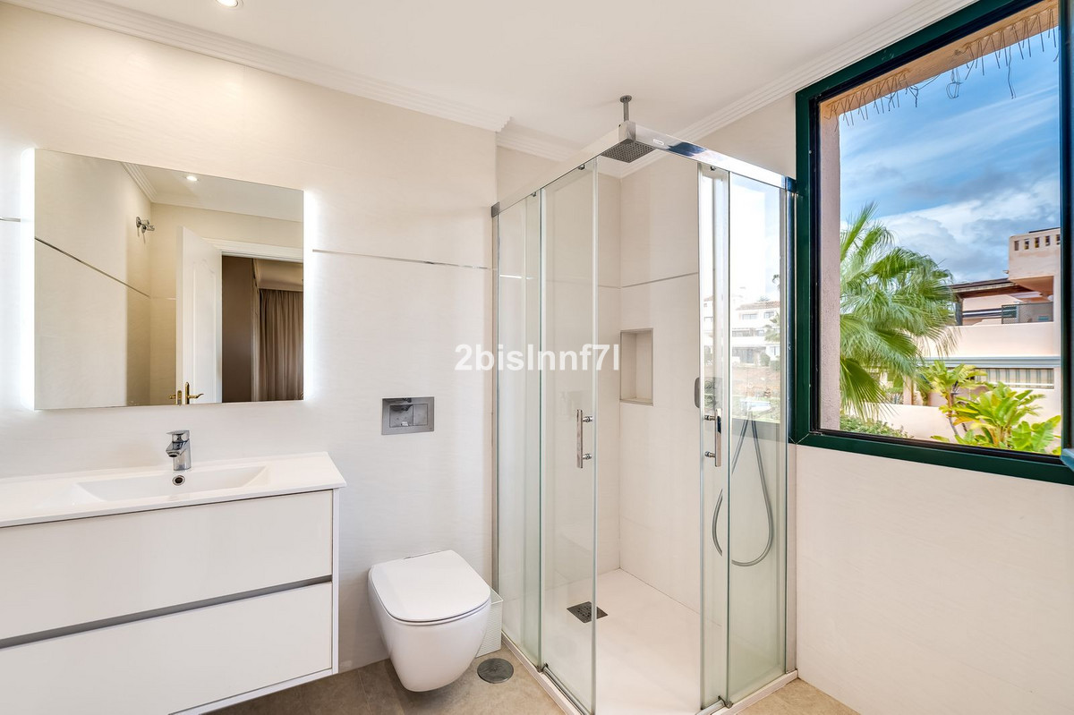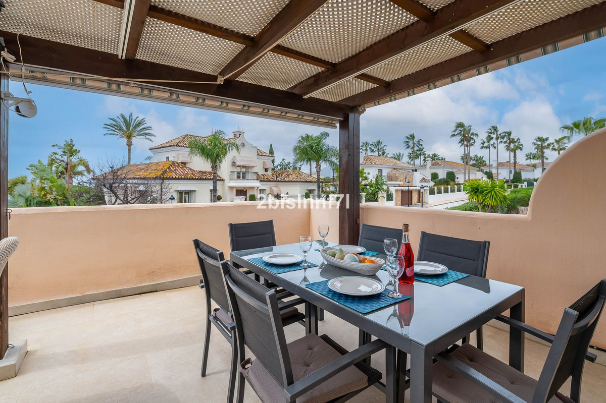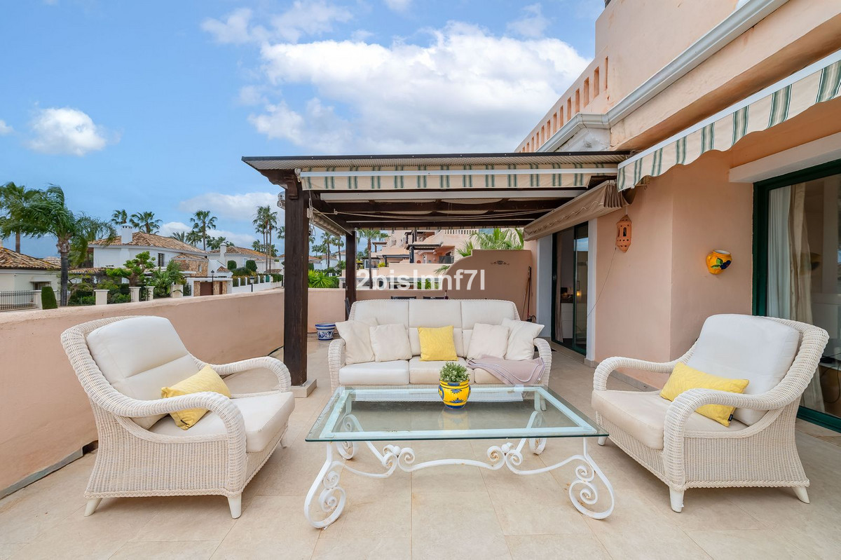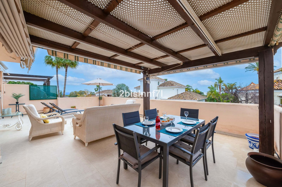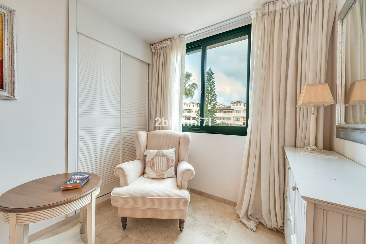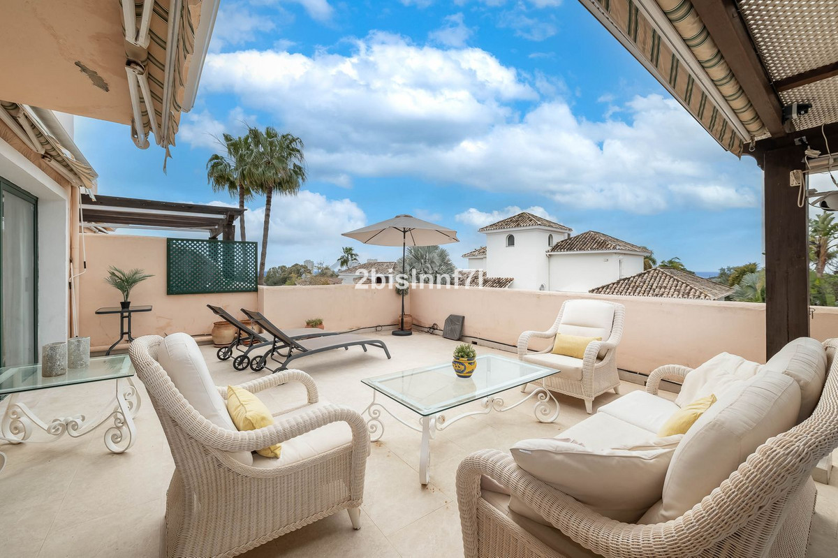 The apartment consists of two generously sized bedrooms and a third smaller one, ideal as a guest room, home office, or children's bedroom. Bedrooms benefits from lovely views of the landscape gardens. The two bathrooms have been renovated and feature underfloor heating for maximum comfort. The kitchen has also been completely renovated with high-end appliances and a modern design. One of the highlights of this property is its spectacular large terrace, with multiple areas to enjoy outdoor living. It features a covered dining space ideal for alfresco meals, a charming chill-out area and a sunbathing zone with longers, all offering beautiful views. Thanks to its excellent orientation, the apartment enjoys sunlight all day long, from 10 AM until sunset. From the terrace you can also enjoy a beautiful sea view on the horizon.