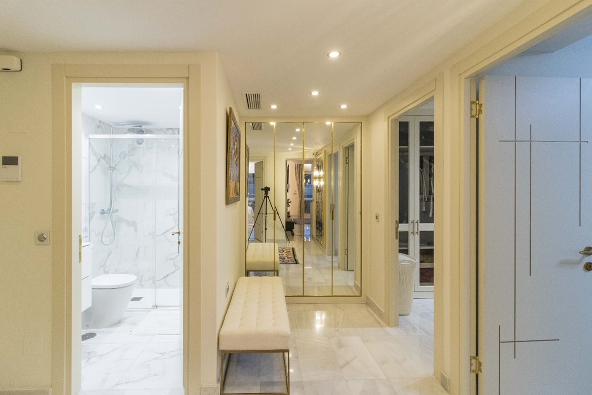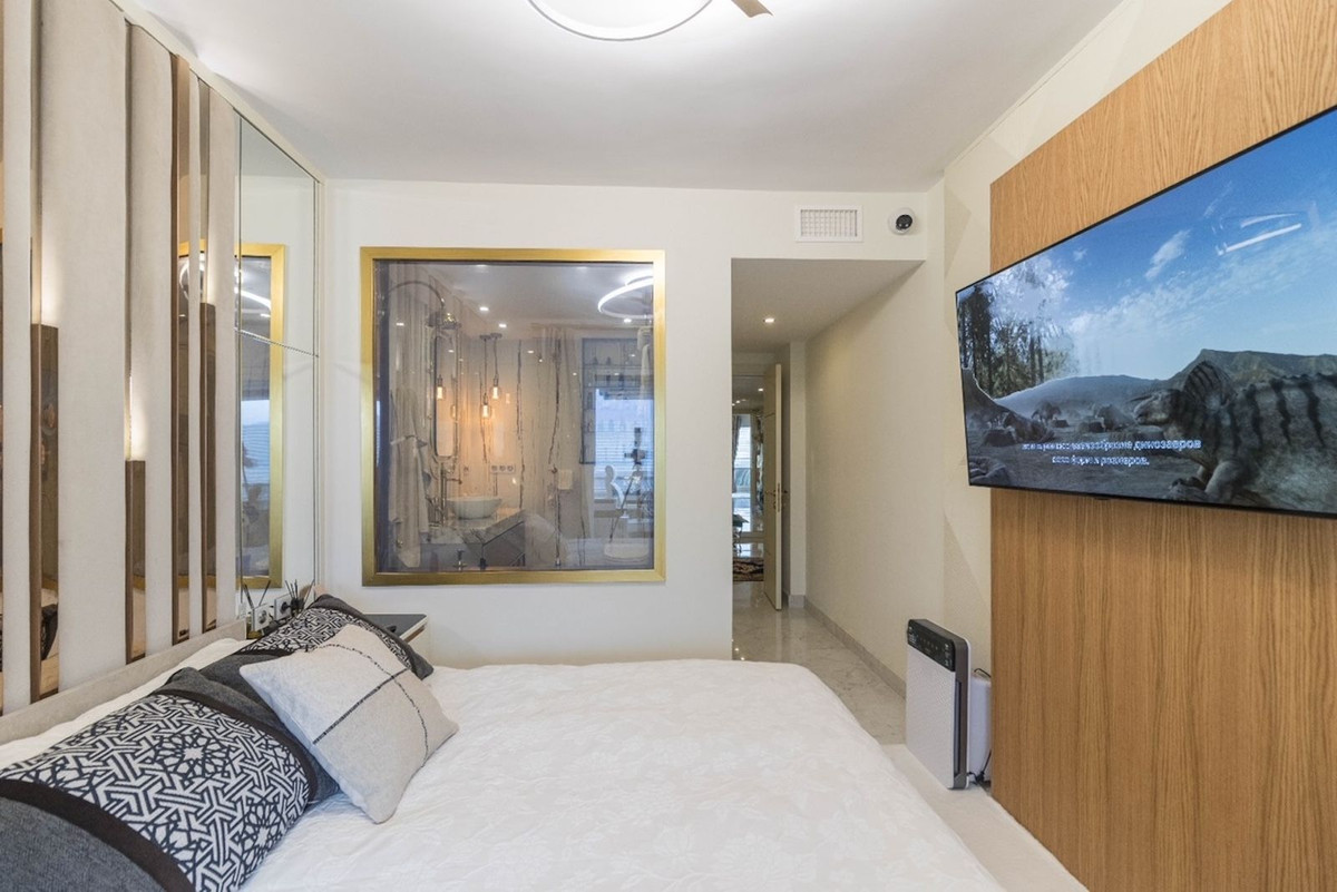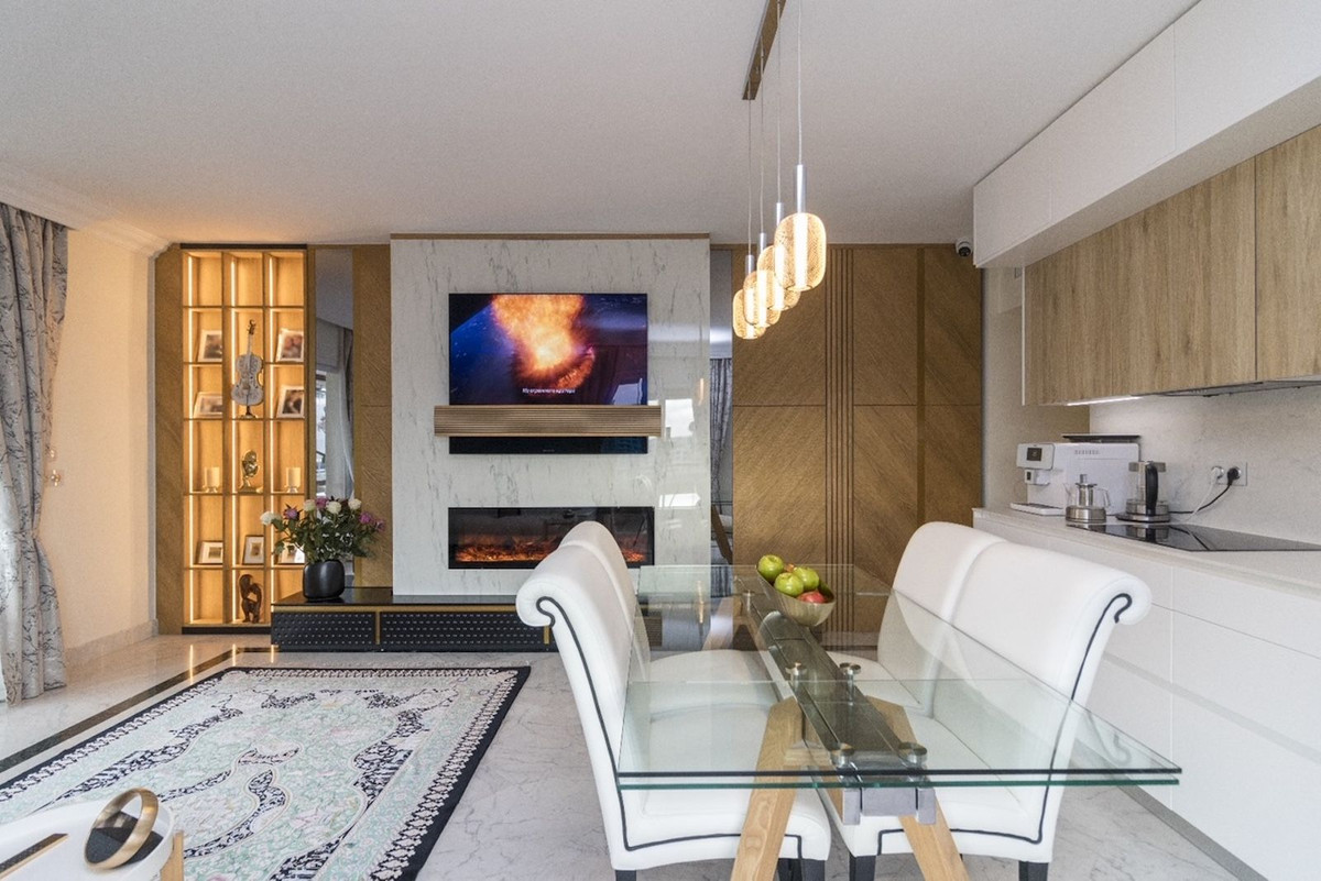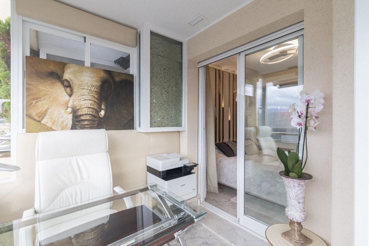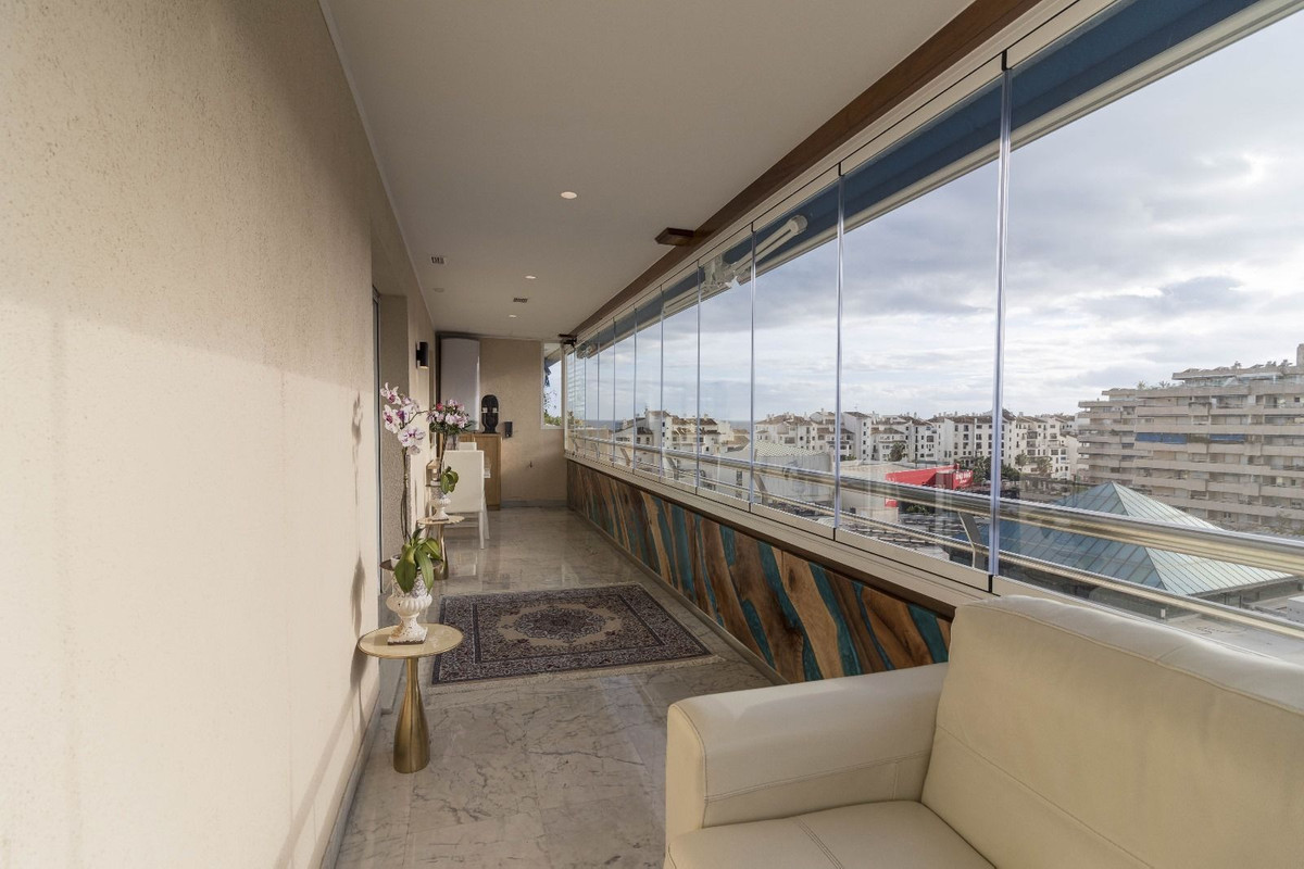Fantastic apartment, renovated high standard, with high quality materials, ideal for living comfortably, without having to use the car. It is spacious, corner, on a high floor. Very convenient location - next to the sea, in front of Puerto Banus and El Corte Ingles. Sunny. Located in a pedestrian street, quiet, no traffic. Beautiful sea and mountain views.