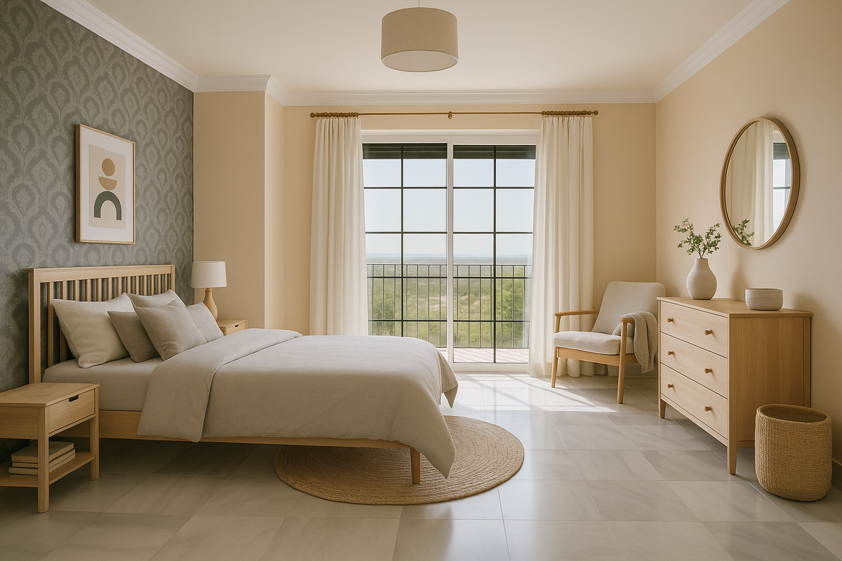 The living room opens directly onto a spacious south-facing terrace, offering endless panoramic views of the Mediterranean and the Marbella skyline a space where the blue of the sea becomes part of your daily life.