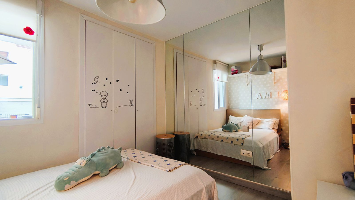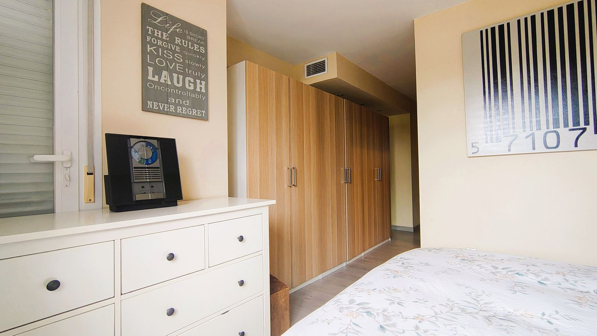 The fully renovated kitchen is equipped and includes an independent utility room, cleverly fitted with custom shoe storage. There is also a 13 m² rear terrace, perfect for extra storage or service use.