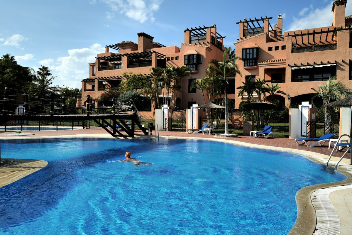 A beautifully located first-floor apartment in the highly sought-after Hacienda del Sol development. The apartment features a spacious master bedroom with an en-suite bathroom, a second bedroom, and a family bathroom. The terrace overlooks one of the stunning swimming pools, making it an ideal holiday home. The sale also includes a parking space and a storage room.