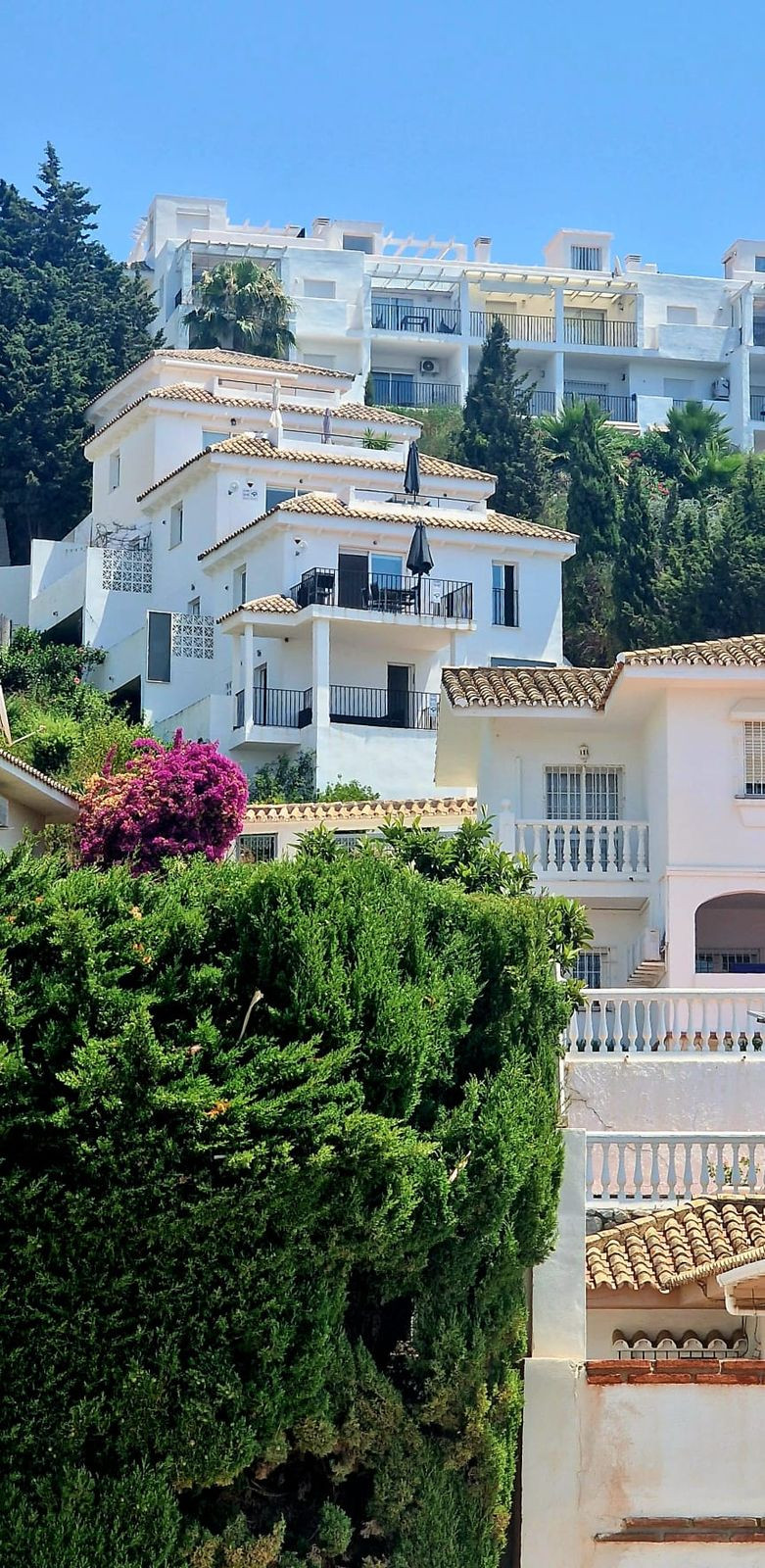 Located in Riviera de Mijas, just a 15-minute walk to the beach, the complex is perched on a hill, offering breathtaking views both day and night, with the sea glimmering and the hills illuminated by the night sky.