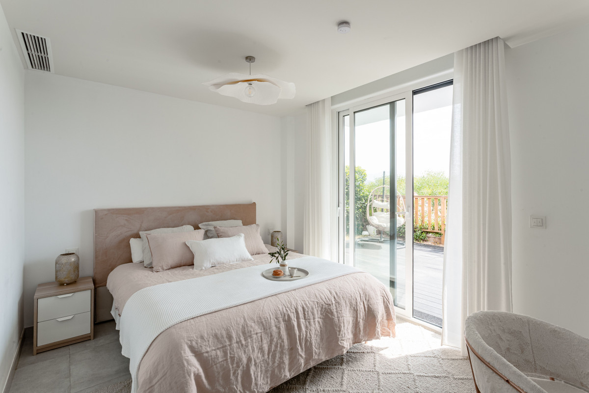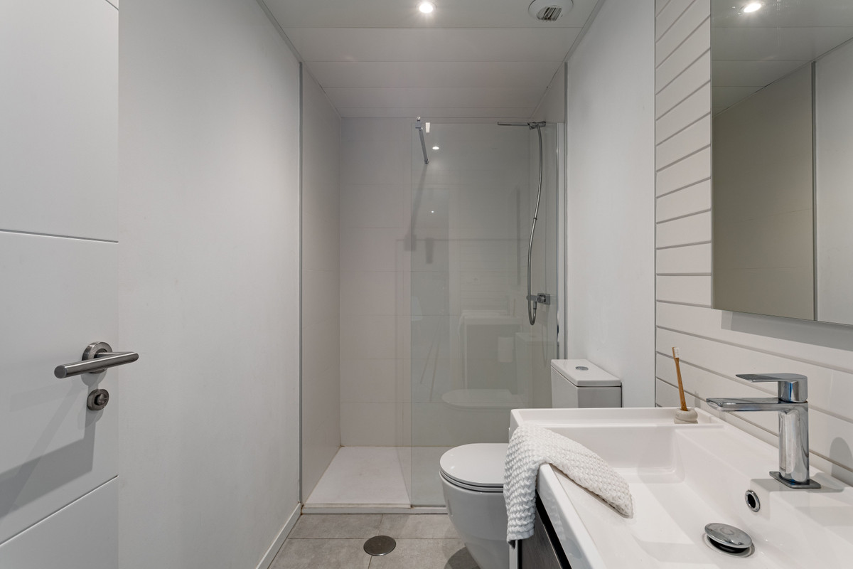 Inside, the open-plan layout combines a fully equipped kitchen, dining area, and bright living room with direct terrace access through elegant sliding doors. The property also includes three generous bedrooms and two sleek bathrooms with spacious showers and underfloor heating, all designed for convenience and comfort.