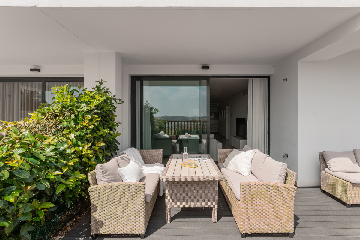 Located on the ground floor of the prestigious Casa Banderas complex, this modern 3-bedroom, 2-bathroom apartment offers the perfect blend of comfort, style, and investment potential. Built in 2020, this property is one of the largest ones in Casa Banderas urbanisation. It features a private decked 56m² terrace with unobstructed views—ideal for relaxing mornings or serene evenings.
