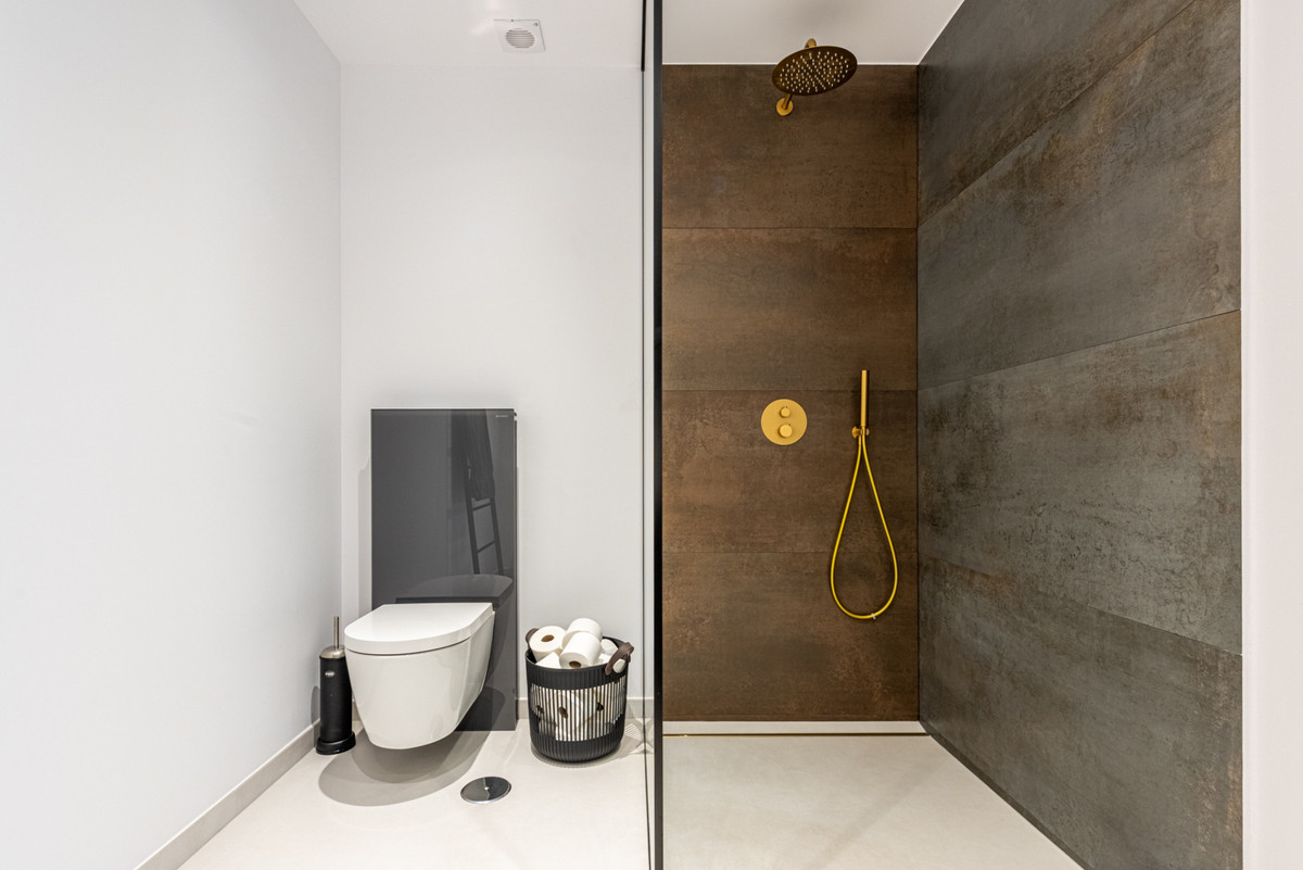 The interior showcases a minimalist Scandinavian aesthetic, seamlessly blending high-quality materials with a soft, neutral palette that enhances light and space. A fully equipped kitchen with premium Samsung appliances complements the open, airy feel, creating a perfect balance between style and comfort.