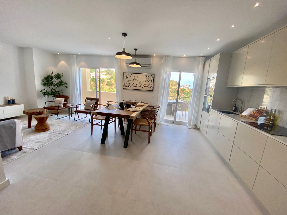 Beautiful large fully renovated penthouse located in a gated complex in La Quinta, close to the famous Westin Hotel. The property comprises of a spacious living area with open plan kitchen, 4 bedrooms and 3 bathrooms, large terrace with panoramic views. The property has been renovated with high quality materials: kitchen with Neff appliances, natural wood and tastefully decoration. The complex offers large tropical gardens and communal swimming pool, as well as parking for residents. Puerto Banus and the beach are only few minutes drive away.