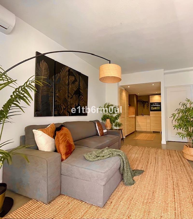 Cet élégant appartement d'une chambre, exposé plein sud, bénéficie d'un emplacement privilégié, en bord de mer, à trois minutes à pied de la plage, sur le très prisé Golden Mile de Marbella. Il est également à quelques pas des commerces, du centre-ville, du port et des restaurants. L'appartement fait partie d'une résidence fermée, garantissant intimité et sécurité grâce à un service de conciergerie 24h/24. Il dispose d'un espace de vie lumineux et aéré avec une cuisine moderne entièrement équipée. La grande chambre spacieuse et lumineuse, avec placards, offre un havre de paix calme et accueillant. La salle de douche contemporaine est dotée d'une élégante cabine de douche avec meuble-lavabo suspendu et rangements. Pour plus de confort et d'intimité, des toilettes séparées sont à votre disposition. La climatisation réversible assure un confort optimal toute l'année. Le grand balcon comprend un espace de rangement et des stores pour les journées ensoleillées. Les espaces communs comprennent un jardin bien entretenu, deux piscines et un parking sécurisé.