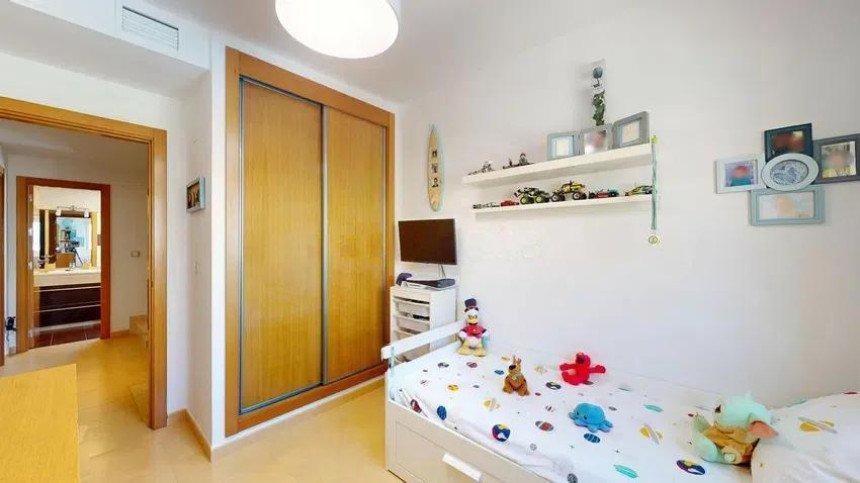 Le point fort de cet étage est le salon-salle à manger de 30 m², doté d'une cheminée à granulés, créant une atmosphère moderne et chaleureuse baignée de lumière naturelle. De là, on accède à une seconde terrasse de 25 m² avec barbecue, idéale pour les réunions de famille ou les soirées d'été entre amis. Cette terrasse communique directement avec les espaces communs, qui comprennent des jardins et deux piscines (une pour adultes et une pour enfants).