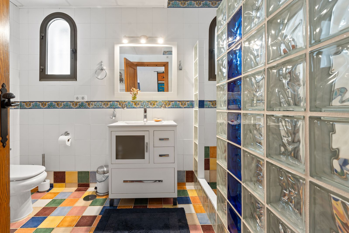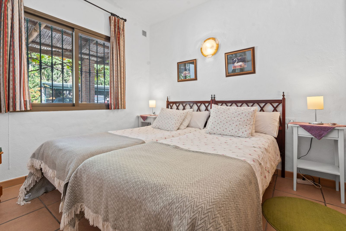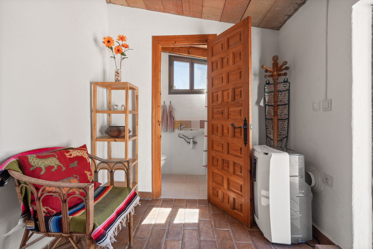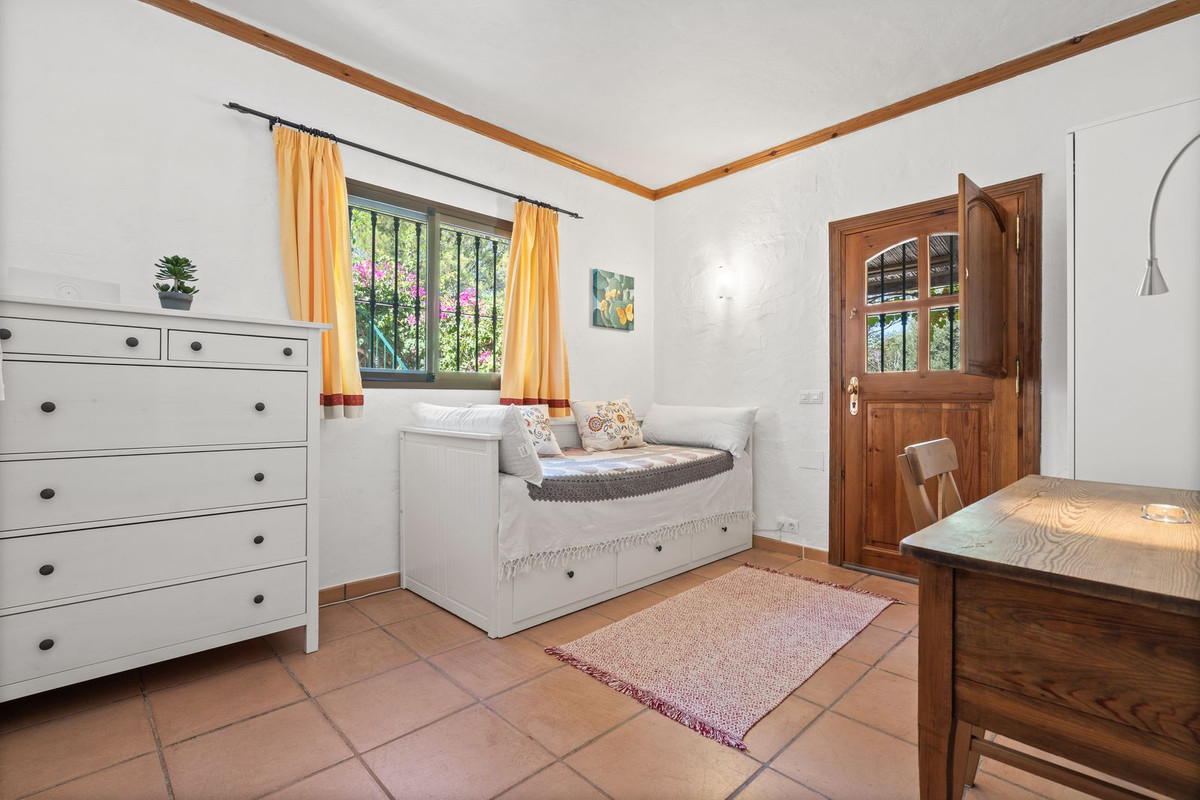 Cette villa de plain-pied, à l'agencement pratique et fluide, conserve le charme authentique d'une maison de campagne. Des détails tels que des plafonds voûtés et à poutres apparentes, des pierres rustiques et du fer forgé décoratif apportent chaleur et personnalité. Une suite d'invités séparée, accessible par un escalier extérieur depuis le patio, assure l'intimité des visiteurs. L'élégante allée, les oliviers, les points d'eau et le verger créent l'atmosphère d'une finca miniature.