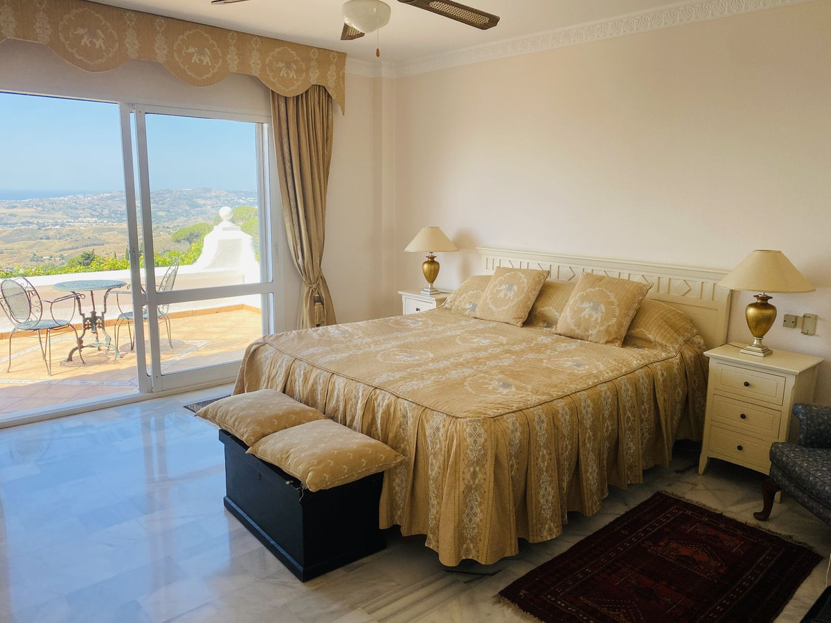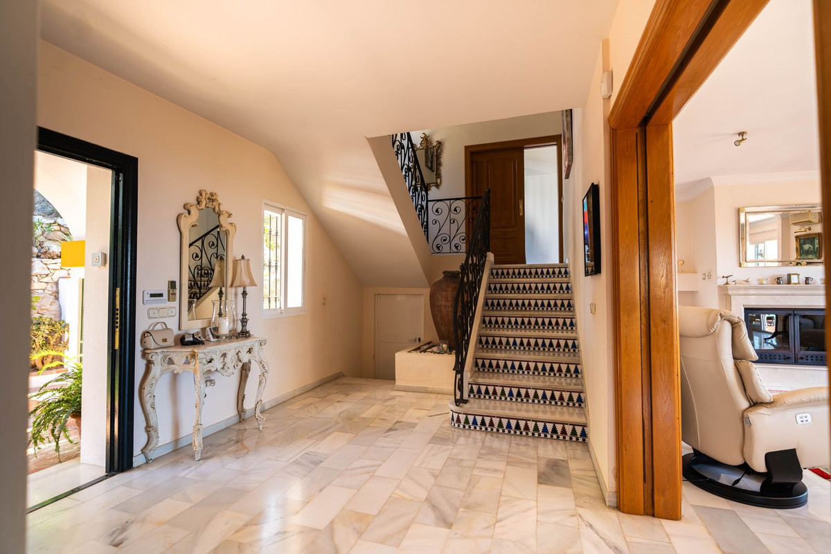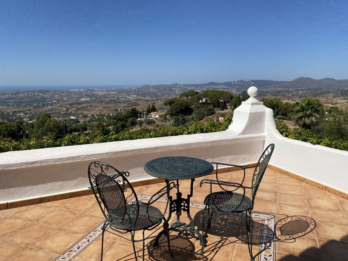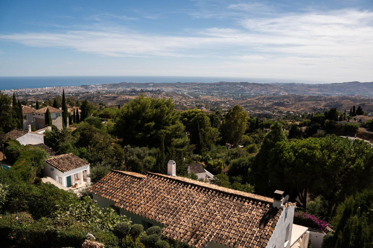 Depuis sa position dominante à Mijas La Nueva, cette villa bénéficie d'une vue panoramique exceptionnelle s'étendant du littoral méditerranéen aux montagnes environnantes, avec des couchers de soleil spectaculaires lorsque le soleil disparaît derrière les sommets. La vue est à couper le souffle, inspirante et véritablement incomparable.