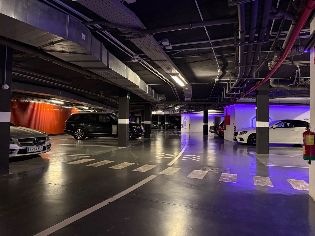 L'appartement est entièrement meublé et dispose de placards intégrés, dont un dressing dans la suite parentale. Le chauffage au sol est assuré par un ascenseur et vous conduit directement à votre porte. La conception, signée par l'architecte primé Rafael de La-Hoz, allie style avant-gardiste et confort moderne. Doté de deux places de parking en sous-sol, cet appartement est à la fois pratique et luxueux.