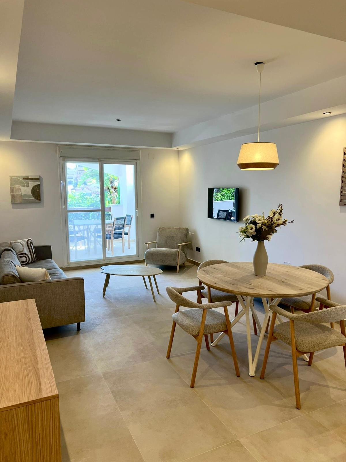 L'appartement dispose de deux chambres lumineuses et confortables, d'une salle de bains moderne et d'un séjour ouvert donnant directement sur la terrasse. Chaque détail a été soigneusement pensé pour créer une atmosphère chaleureuse et accueillante.