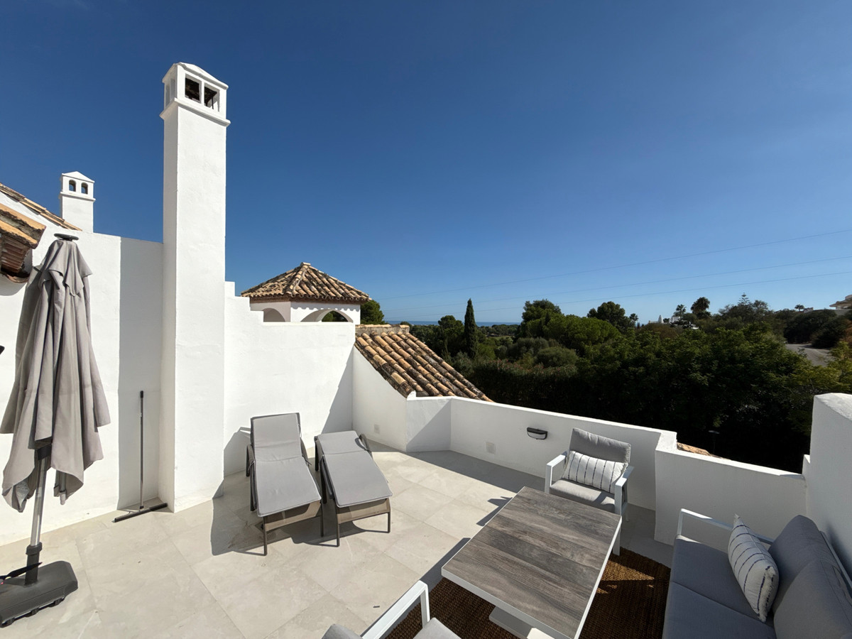Située dans une prestigieuse résidence sécurisée au cœur de Nueva Andalucía, cette maison de ville de 3 chambres, magnifiquement rénovée, allie luxe, espace et art de vivre. Située en première ligne du golf et offrant une vue dégagée sur la mer, cette propriété représente une opportunité exceptionnelle dans l'un des quartiers résidentiels les plus prisés de Marbella.