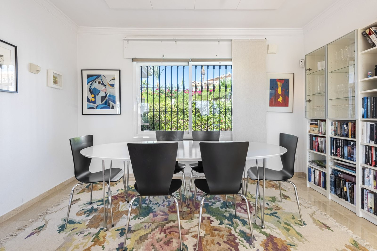 Bienvenue dans cette magnifique villa de plain-pied, idéalement située dans le quartier prisé de Mijas Golf. Vous profiterez d'une vue dégagée sur le jardin luxuriant et la verdure du parcours de golf ; un havre de paix où la tranquillité et le chant des oiseaux créent une atmosphère unique.
