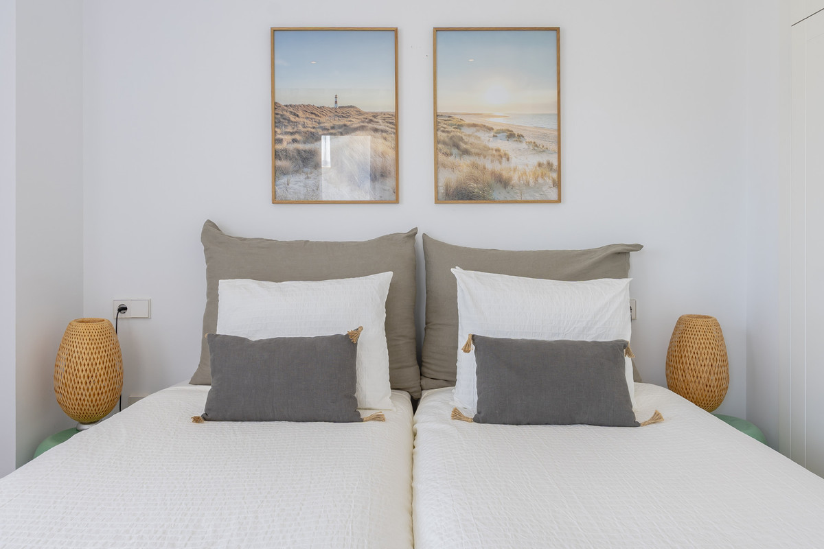 L'appartement comprend deux chambres et deux salles de bains, un séjour lumineux et moderne, un garage privé et un débarras. La piscine commune et les espaces communs bien entretenus offrent une atmosphère exclusive et détendue.