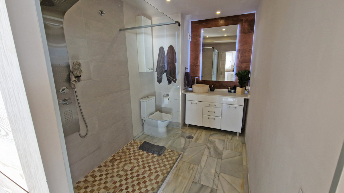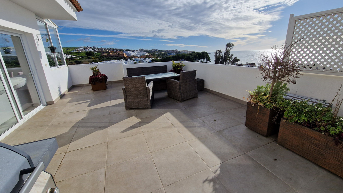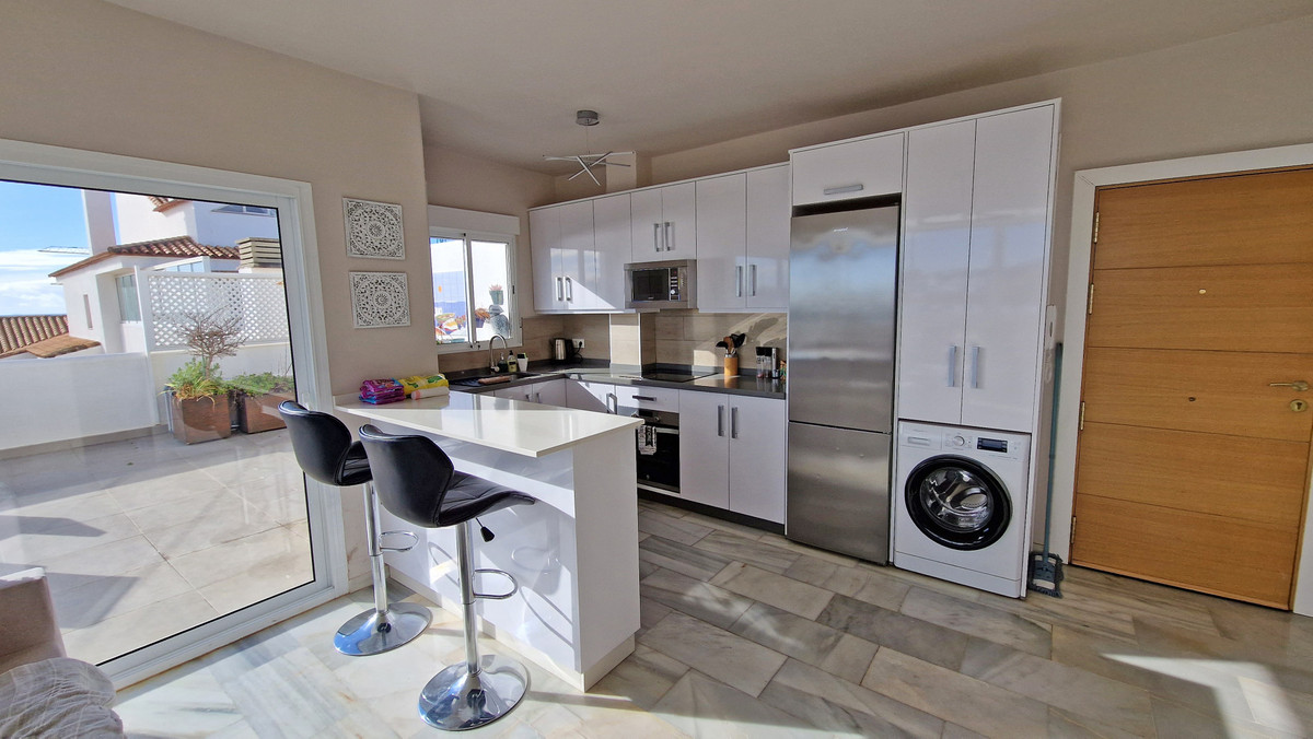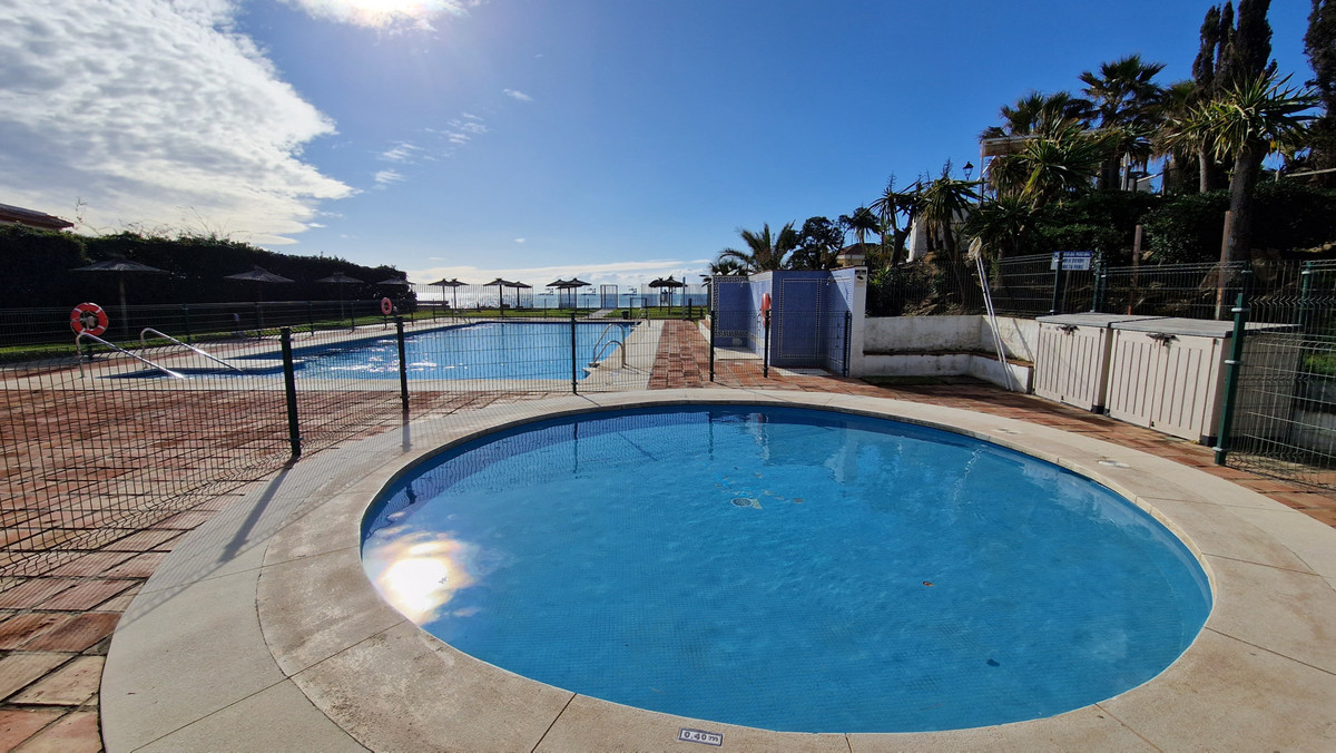 Urbanisation fermée consolidée, à 2 minutes en voiture et 20 minutes à pied du port de plaisance d'Estepona, avec accès direct à la plage, grande piscine d'eau salée, court de tennis, espace barbecue et parking commun.