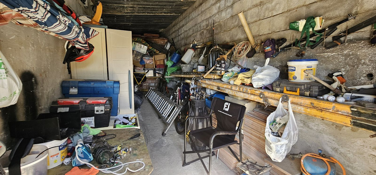 Le logement comprend 160 m² habitables répartis en 3 chambres, deux salles de bains, un séjour et une cuisine équipée. La partie inférieure (120 m²) est ouverte et accessible depuis l'extérieur et l'intérieur. La parcelle totale est de 955 m². Un jardin avec piscine est à rénover.