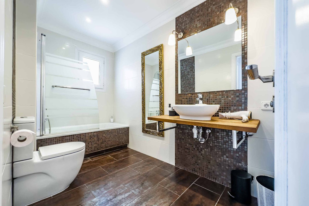 Nous sommes heureux de vous présenter cette magnifique villa individuelle de 4 chambres et 3 salles de bain, de style andalou classique. Construite en 1988 et récemment rénovée avec des matériaux de haute qualité, elle bénéficie d'un jardin arboré avec des espaces salon et repas couverts et ouverts, ainsi que d'un espace barbecue dédié, idéal pour profiter du climat agréable et de la vue sur la mer et les montagnes. Son emplacement est idéal, à 5 minutes en voiture des plages et du village de Benalmádena. La villa dispose d'un parking pour au moins 4 voitures, d'une grande piscine privée, d'un solarium avec vue magnifique, de deux espaces salon, d'un bar, d'un espace barbecue, de remises et d'un trampoline. À l'étage, par le hall, on accède à un vaste salon avec cheminée donnant accès à la terrasse couverte, à la cuisine, à la salle à manger et à des toilettes invités. Au rez-de-chaussée, on trouve 4 chambres doubles et 3 salles de bain, dont 2 attenantes, et 2 avec accès à la piscine et aux jardins.
