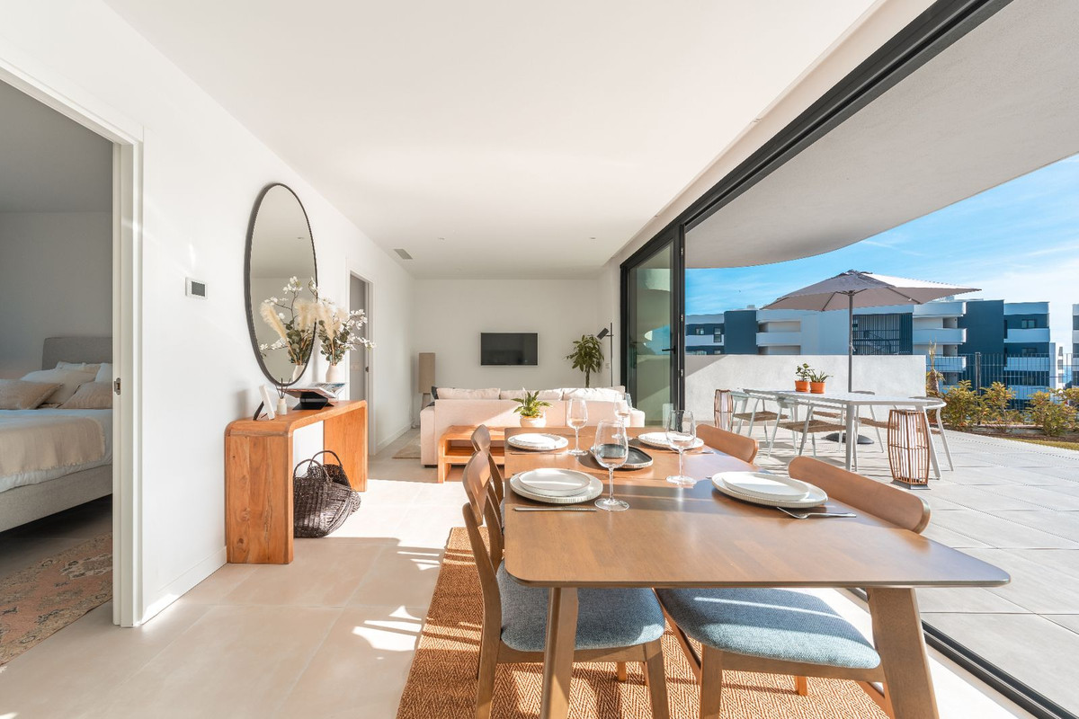 Bienvenue dans cet appartement serein et élégant, situé au rez-de-chaussée, qui incarne l'essence même de la vie méditerranéenne contemporaine. Ce bien de deux chambres et deux salles de bain, magnifiquement présenté, allie un design moderne à des tons naturels chaleureux et une luminosité abondante, créant une atmosphère chaleureuse et relaxante dès l'entrée.