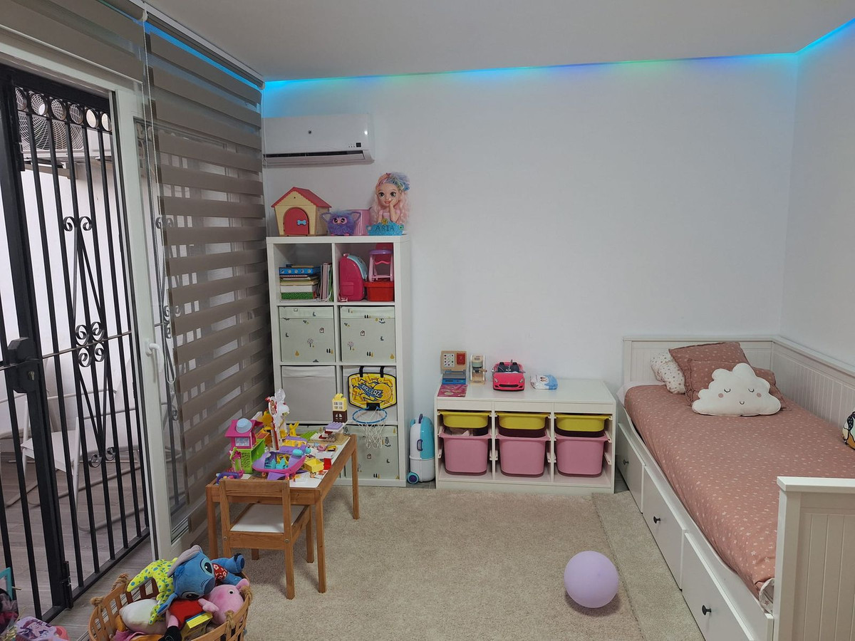Upstairs, you’ll find two additional bedrooms, each with access to a private balcony or terrace, plus a contemporary bathroom with bathtub.