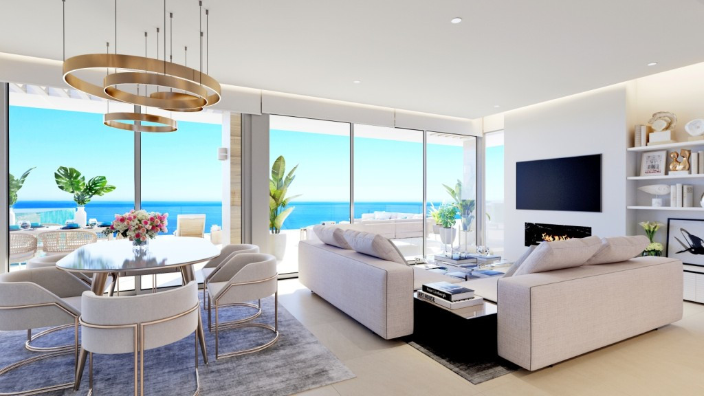 The apartments benefit from high end fittings and fixtures, including open plan kitchens A-rated energy appliances as standard and have incredible views of both the mountains and the sea, from terraces due to their hilltop location.