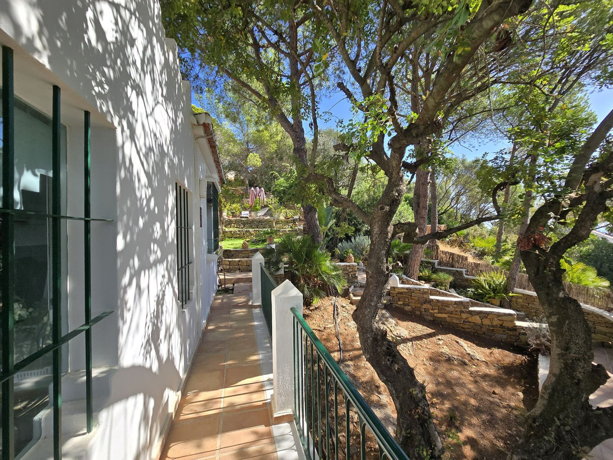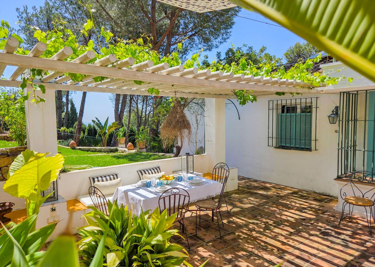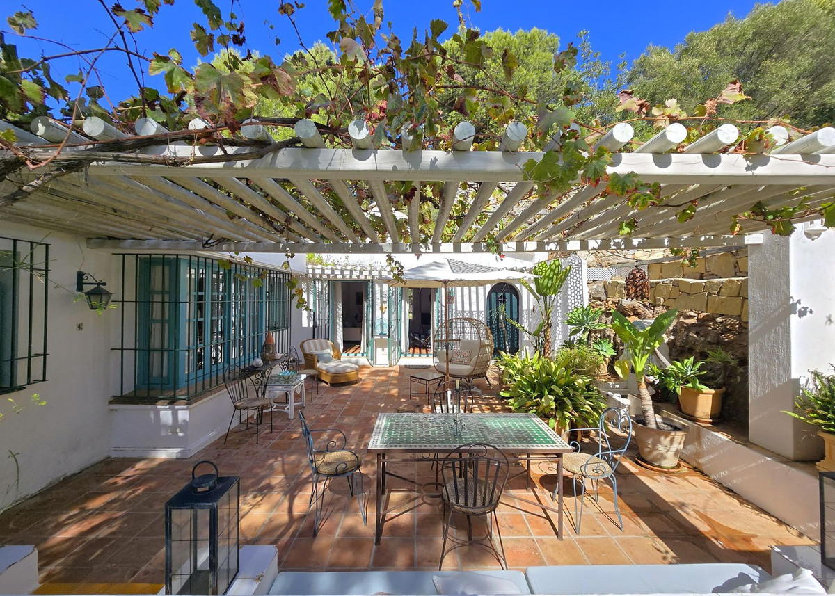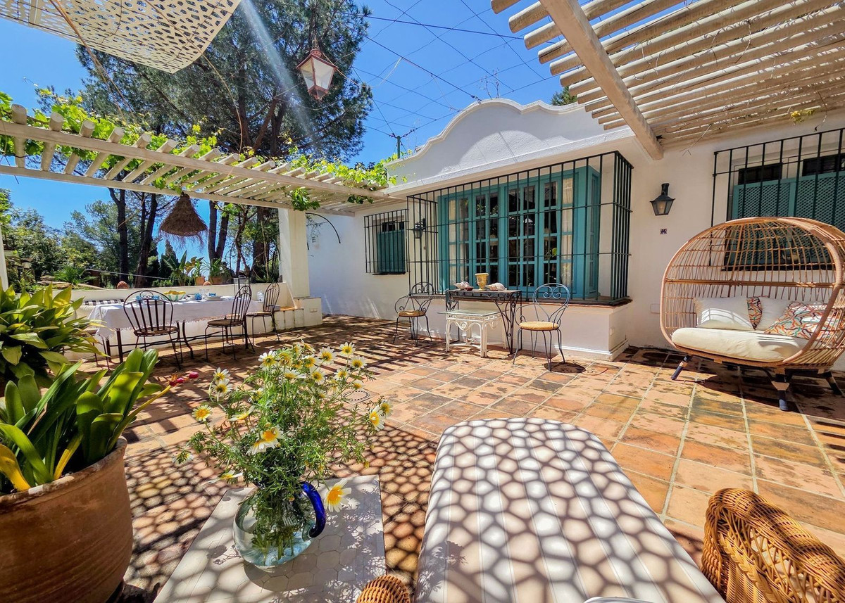 Set amidst fragrant pine trees in the prestigious Montúa area, just above Marbella at the foot of the majestic La Concha mountain, this charming single storey cortijo-style villa perfectly blends traditional Andalusian character with modern comforts.