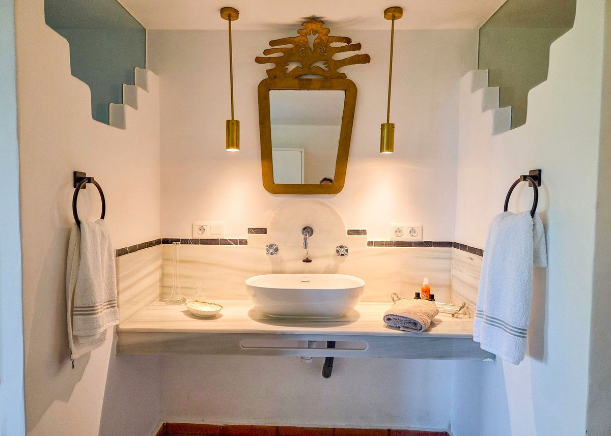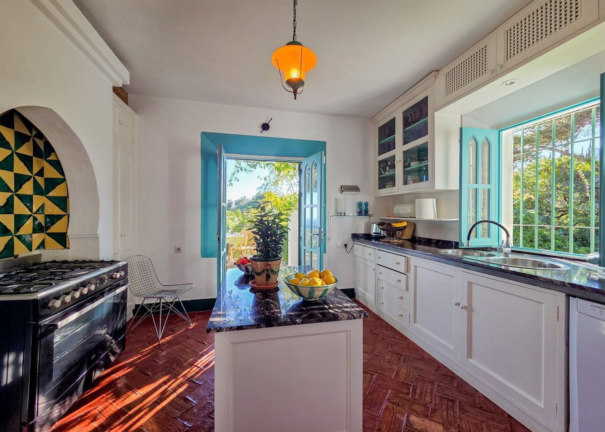 The villa’s swimming pool, a true jewel in the crown, commands mesmerizing open sea views that extend to Gibraltar and the distant shores of Morocco. Framed by mature carob trees, it invites you to unwind in its serene beauty, while the adjacent summer lounge sets the stage for unforgettable moments of relaxation and outdoor entertaining.