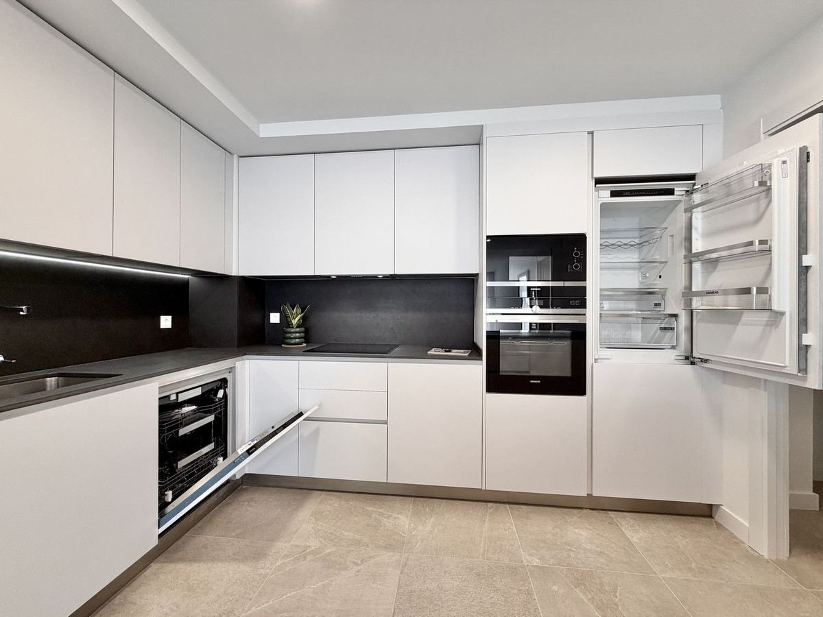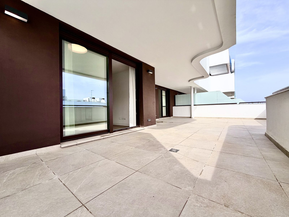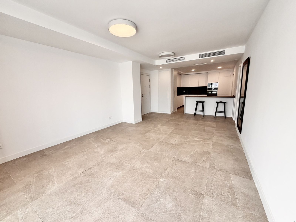 Le salon ouvert avec une cuisine moderne s'ouvre sur une spacieuse terrasse privée, parfaite pour profiter du style de vie méditerranéen.
