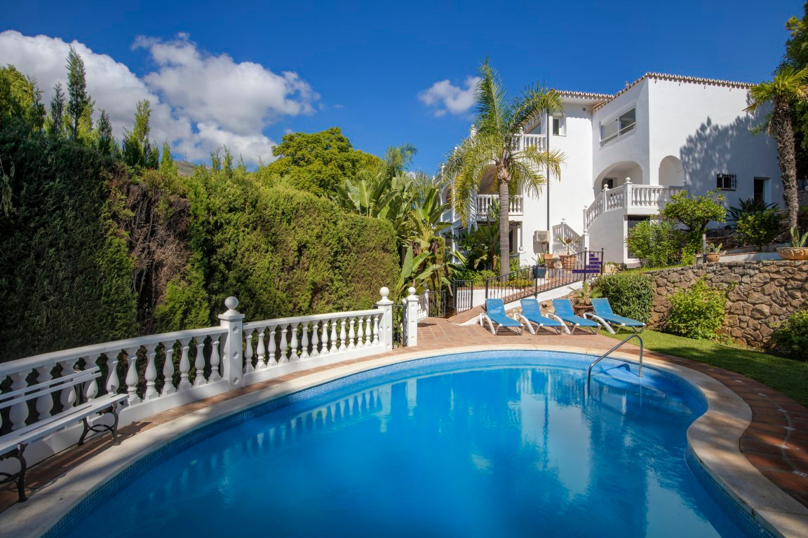 Just a five-minute walk from the sea and offering breathtaking, unobstructed views of the Mediterranean, this villa in Torremuelle, Benalmádena, is much more than a property, it\'s an invitation to live surrounded by light, tranquility, and nature.Set on a generous 1,328 m² plot, with a total built area of 413 m² distributed over three floors, the villa provides a solid foundation with outstanding potential for a full renovation that could truly enhance its value and character. While the home is in good condition and ready to move into, it presents a fantastic opportunity for those looking to create a bespoke residence in one of the most sought-after coastal settings.The villa features six bedrooms and four bathrooms, along with a spacious and bright living room with a cozy fireplace and large windows that perfectly frame the sea views. The kitchen has been recently renovated, is fully equipped, and opens directly onto a terrace where the Mediterranean takes center stage. Additional spaces include a gym area, wine cellar, and several sun-drenched terraces that can be adapted to suit any lifestyle or family need.The exterior is a true Mediterranean retreat, with a lush, mature garden and water features surrounding a large private pool, complete with shower area, outdoor bathroom, and a fully equipped summer kitchen with BBQ, ideal for entertaining and enjoying the Costa del Sol climate. The property also includes a covered garage and additional on-site parking.The location is simply unbeatable. Nestled in a peaceful residential area, it’s exceptionally well connected, just minutes from local bus stops and the Torremuelle train station, which offers easy access to Málaga and Fuengirola. Only a short 3-minute drive to restaurants, cafés, beach clubs, and supermarkets like Lidl and Mercadona. Sports lovers will appreciate the proximity to the Torremuelle Racket Center, offering tennis and paddle courts just 6 minutes away, as well as the prestigious Torrequebrada Golf Club only 10 minutes from the villa. Málaga International Airport is conveniently located just 20 minutes away by car.A home with soul, spectacular views, and incredible potential to personalize, without giving up the comfort of being move-in ready. Whether you\'re looking for a primary residence, a holiday home, or a high-potential investment in one of the most desirable areas of the Costa del Sol, this villa is a must-see. Contact for private tour.The abbreviated information document is available to you. Expenses: Taxes (ITP or VAT+AJD) + Notarial and registration expenses.ALA..