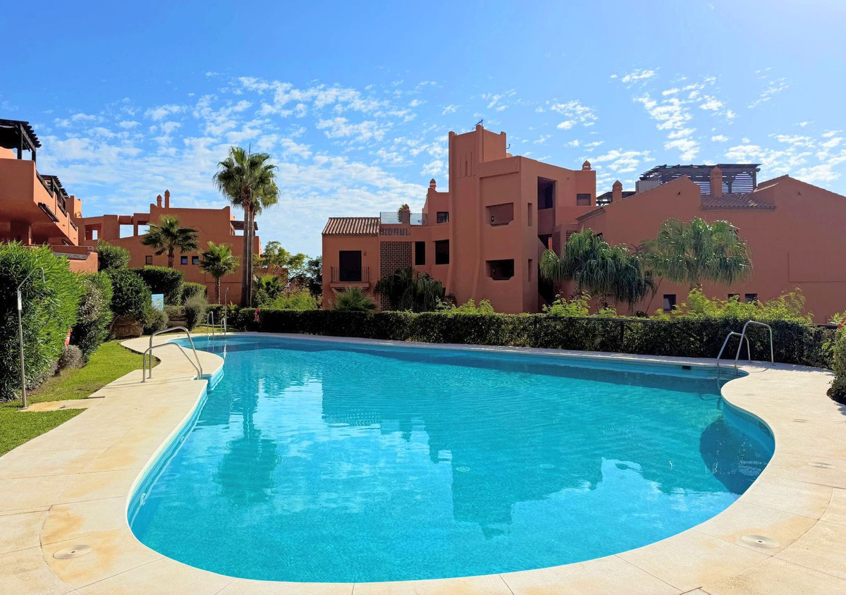 GROUND-FLOOR APARTMENT WITH LARGE TERRACE AND TOURIST LICENSE NEAR THE SEA. Privileged location in a charming Mediterranean-style complex, just 200 m from the beach and only a 5-minute drive from Estepona and the vibrant Duquesa Marina, where you’ll find all kinds of services, restaurants, and leisure options. This beautiful ground-floor apartment stands out for its brightness, thanks to its southeast orientation, and for its magnificent newly renovated terrace, featuring glass curtains, an outdoor kitchen area, and elegant parquet flooring that adds warmth and style.