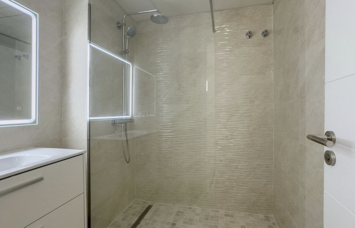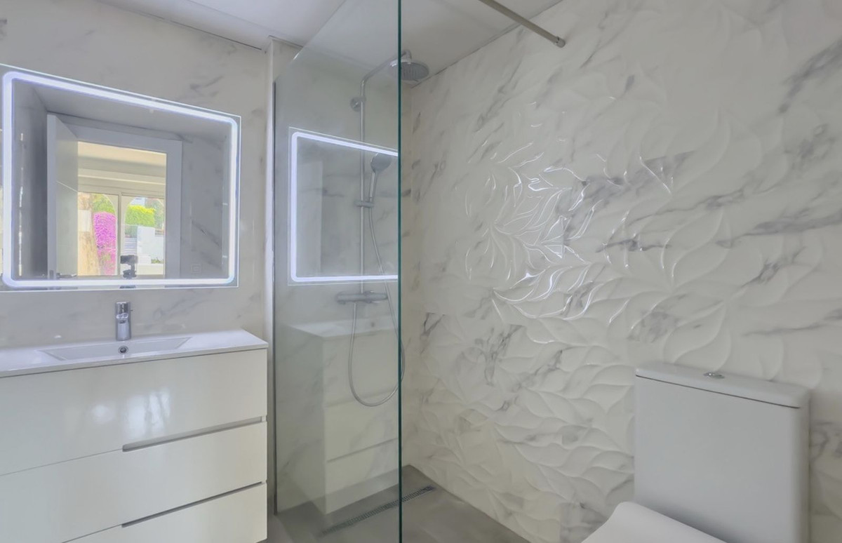 Dès votre entrée dans la propriété, vous disposerez d'une place de parking privative. Un escalier mène à la porte d'entrée, où vous accéderez à un spacieux séjour ouvert avec des baies vitrées coulissantes donnant sur une terrasse. Adjacent au séjour, séparé par une marche, se trouvent la cuisine équipée et la salle à manger. Un escalier dessert les trois chambres, chacune avec sa propre salle de bain. La suite parentale bénéficie d'une salle de bain attenante. Au bout de l'escalier se trouve une buanderie et une porte menant à la grande terrasse sur le toit avec vue dégagée. La propriété dispose également d'un spacieux appartement indépendant au sous-sol. La résidence bénéficie de piscines communes et de jardins luxuriants.