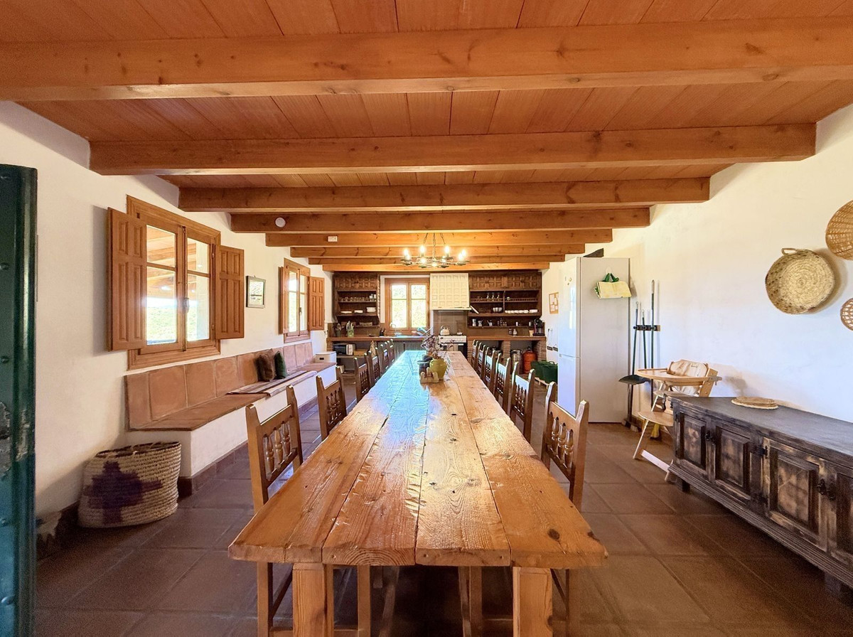 • Ground floor: Spacious living-dining room with fireplace, large rustic kitchen with fireplace and ceramic hob, wine cellar, and a separate staff house with two bedrooms and a bathroom.