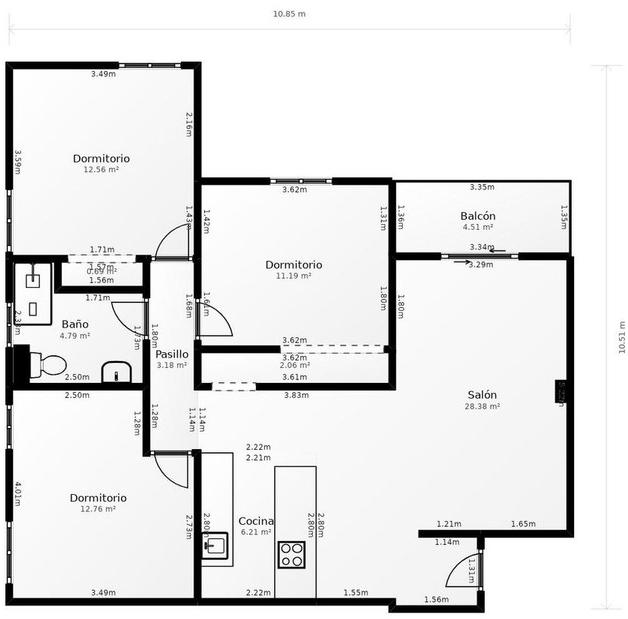 La propriété offre 3 chambres aux dimensions généreuses, toutes avec placards intégrés, et une salle de bain complète.