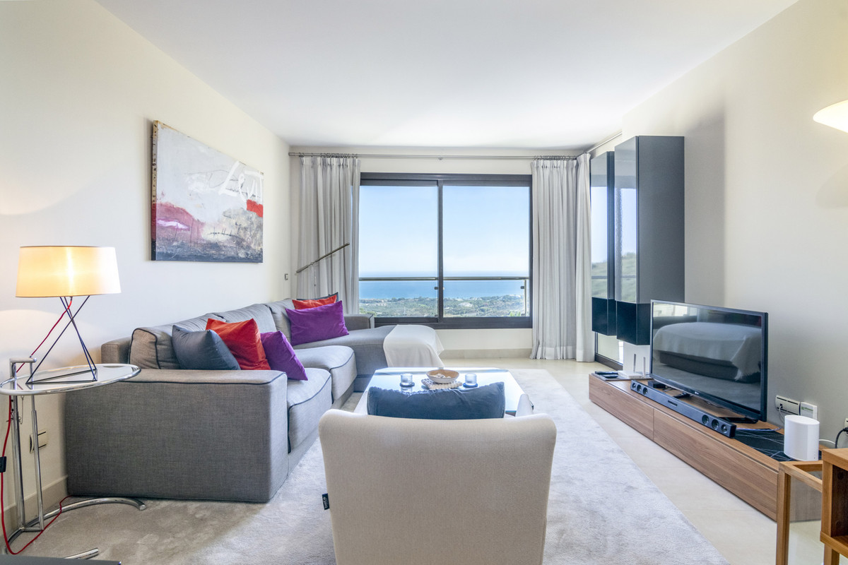 Élégant et moderne, cet appartement de deux chambres du prestigieux Samara Resort à Marbella offre une vue panoramique imprenable sur la mer Méditerranée. Situé au premier étage et facilement accessible par les magnifiques jardins paysagers du complexe, l'appartement présente un agencement lumineux et ouvert qui relie harmonieusement la cuisine entièrement équipée, la salle à manger et le salon, parfaits pour une vie côtière décontractée. Les deux chambres s'ouvrent sur une spacieuse terrasse avec vue sur la piscine et la mer, tandis que la suite parentale comprend une élégante salle de bains attenante, un dressing et de nombreux placards intégrés. Une deuxième salle de bains au design épuré et minimaliste, ainsi qu'une buanderie et des rangements, contribuent au confort quotidien. Situé au sein d'une résidence de luxe fermée avec sécurité 24h/24, les résidents bénéficient d'équipements exceptionnels, notamment un spa, un sauna, un jacuzzi, une salle de massage, une piscine intérieure chauffée, une salle de sport et deux piscines extérieures, dont une impressionnante piscine à débordement offrant une vue imprenable sur la mer.