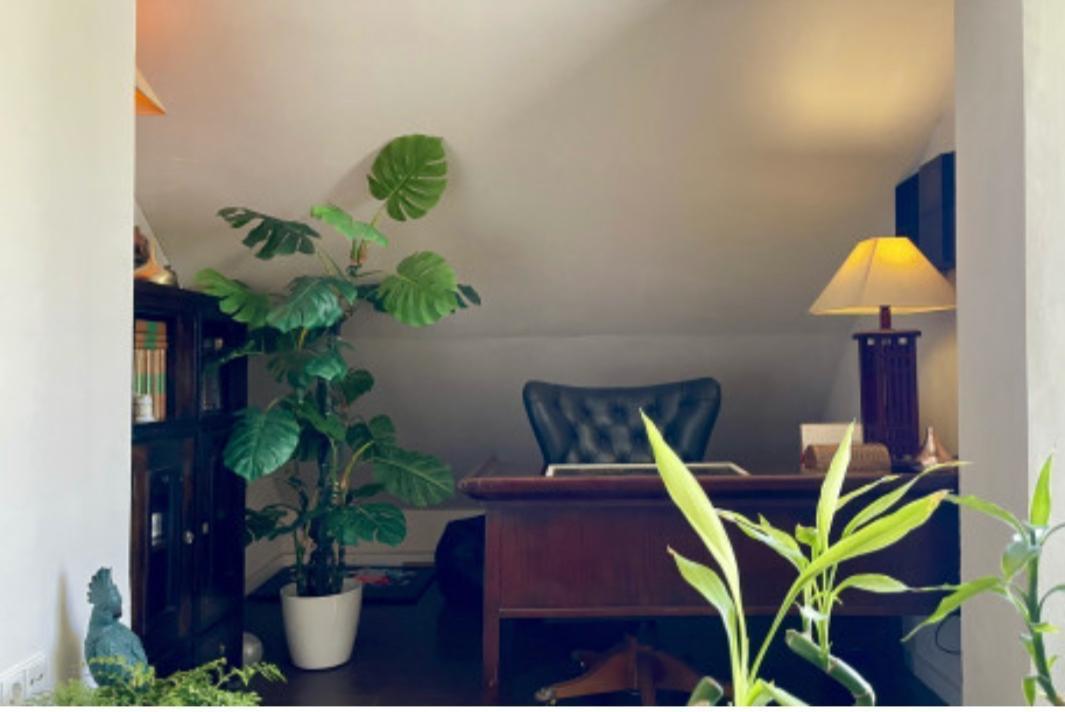 The apartment is accessed via a private entrance hall, with stairs leading to a bright and spacious main floor. The open-plan living and dining area is designed in a modern loft style, featuring high ceilings and large windows that flood the space with natural light. A fully equipped kitchen complements the living area, creating a seamless flow for everyday living and entertaining.