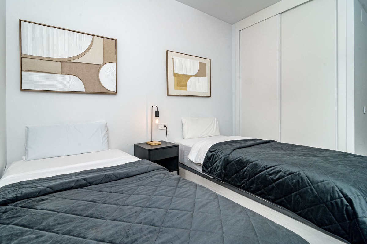 Estepona Gardens was developed by one of Spain’s largest builders and offers excellent communal facilities, including a swimming pool and a children’s play area. The apartment is ideal both as a permanent home or as a lock-up-and-leave holiday property, thanks to its central location, easy maintenance, and an active, valid tourist license. Inside, you’ll find a separate kitchen and an adjoining utility room with a washing machine and water heater. The bedrooms feature built-in wardrobes, and the interiors are finished with light, high-quality materials.