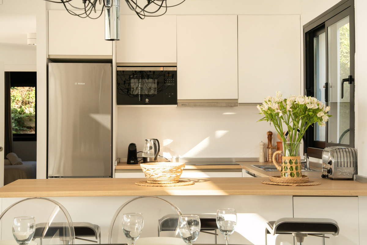 Outside, a private pool and landscaped garden create a relaxed atmosphere, with flowering plants that bring colour throughout the year and give the property a pleasant, spring-like feel. Several terraces provide ideal areas for dining or spending time outdoors.