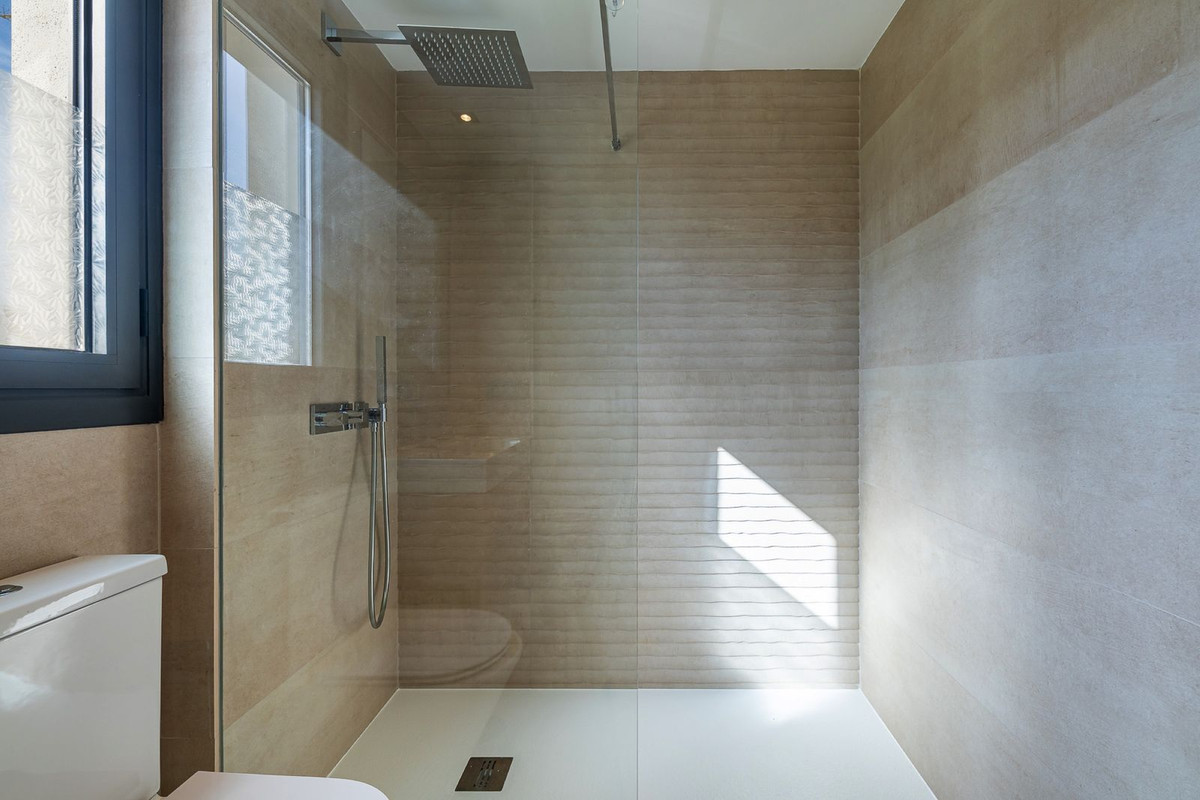 Chacune des trois chambres a été soigneusement conçue pour votre confort, avec des placards intégrés et de grandes fenêtres laissant entrer la lumière naturelle. La chambre principale dispose d'une salle de bains attenante, tandis que les deux autres chambres partagent une salle de bains familiale bien équipée. Les deux salles de bains sont dotées d'équipements contemporains et d'un carrelage élégant.