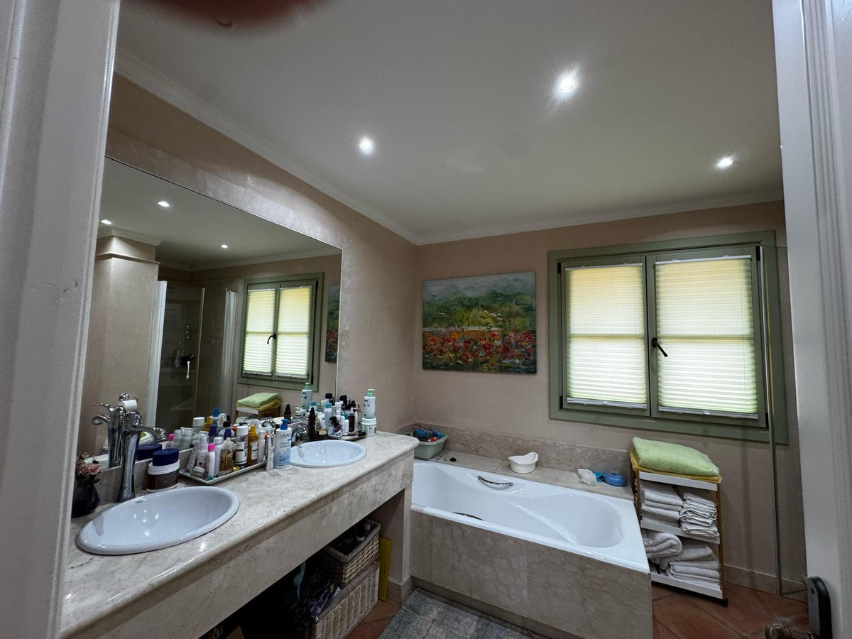 Répartie sur deux niveaux lumineux, cette propriété offre un vaste espace de vie ouvert comprenant salon et salle à manger, qui se prolonge harmonieusement vers le jardin privé et la terrasse ensoleillée – idéal pour recevoir ou se détendre en plein air. Une piscine privée de 9 x 4 m en fait un havre de paix idéal pour en profiter toute l'année.