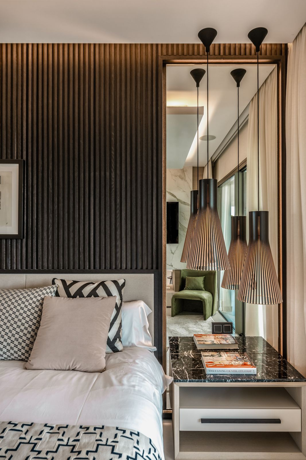 geometric exterior, and chic natural materials in soothing