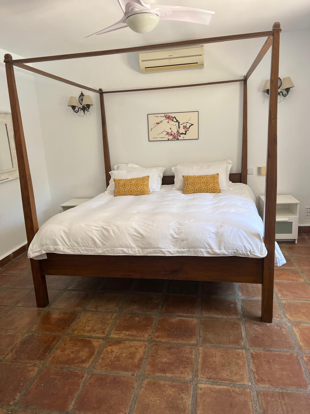 All bedrooms include wardrobes, and the master bedroom benefits from a large en-suite bathroom. The property also includes air conditioning (hot/cold), WiFi, storage room, utility room, and barbecue area.