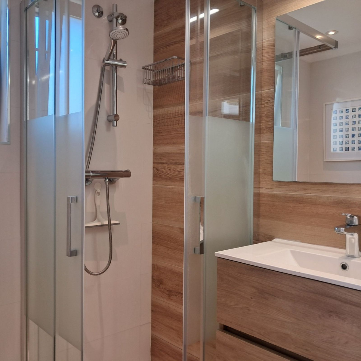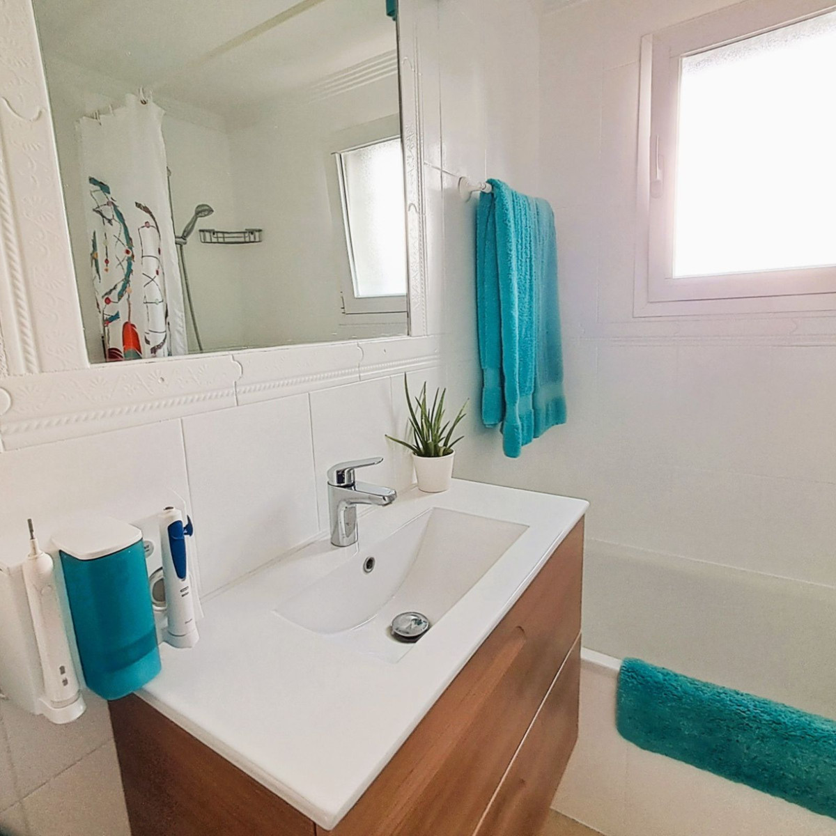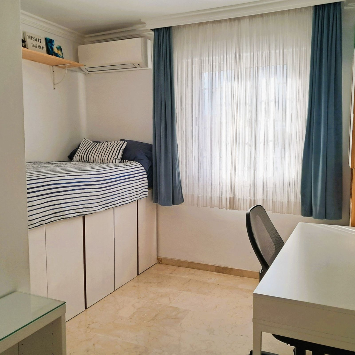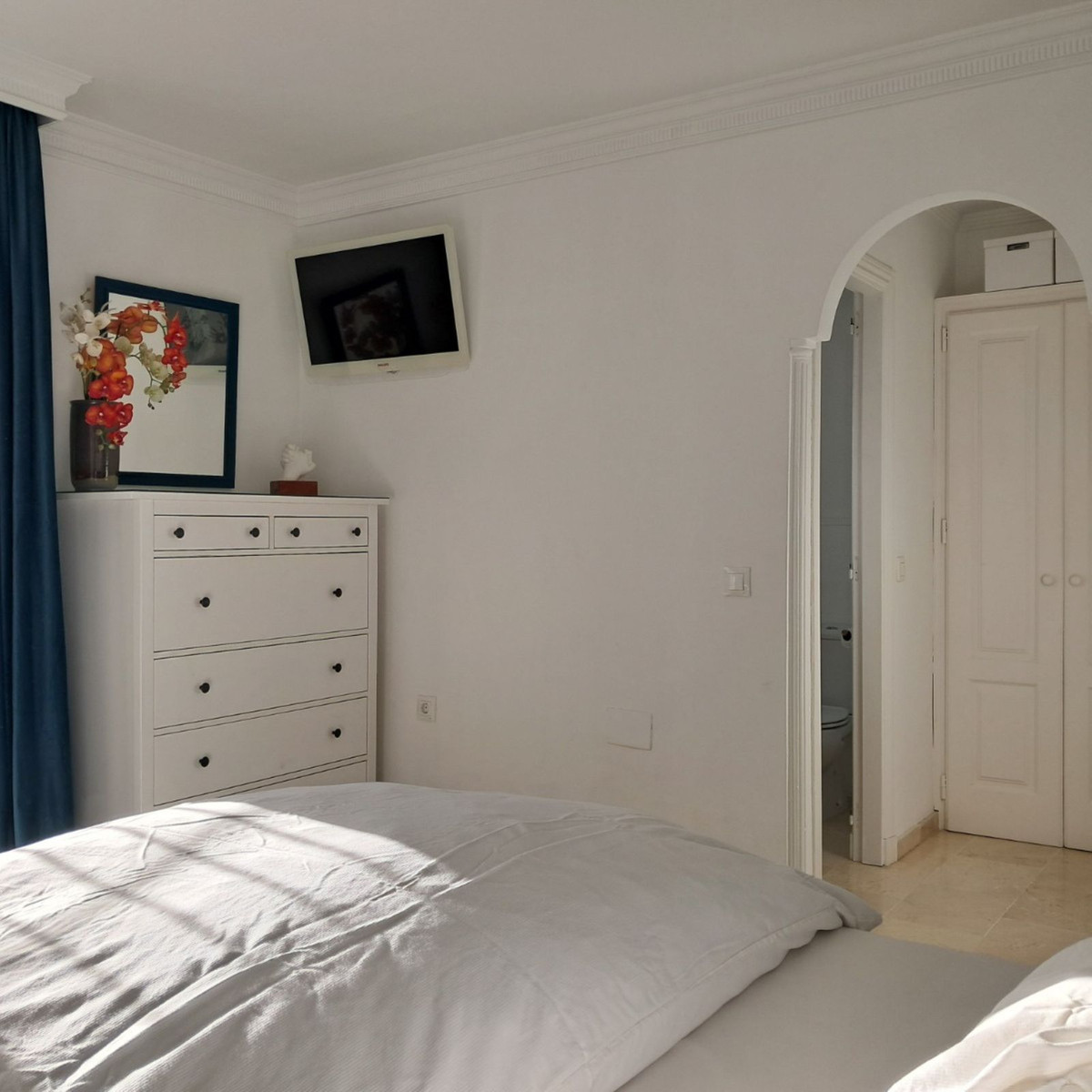 On the first floor are three bedrooms and two bathrooms. The master bedroom includes an en-suite bathroom, while the family bathroom has been fully renovated with premium materials. The second floor hosts a spacious fourth bedroom — currently used as a study — which opens directly onto an 18 m² rooftop terrace, fully refurbished in 2022, offering partial sea views and even a glimpse of Gibraltar.