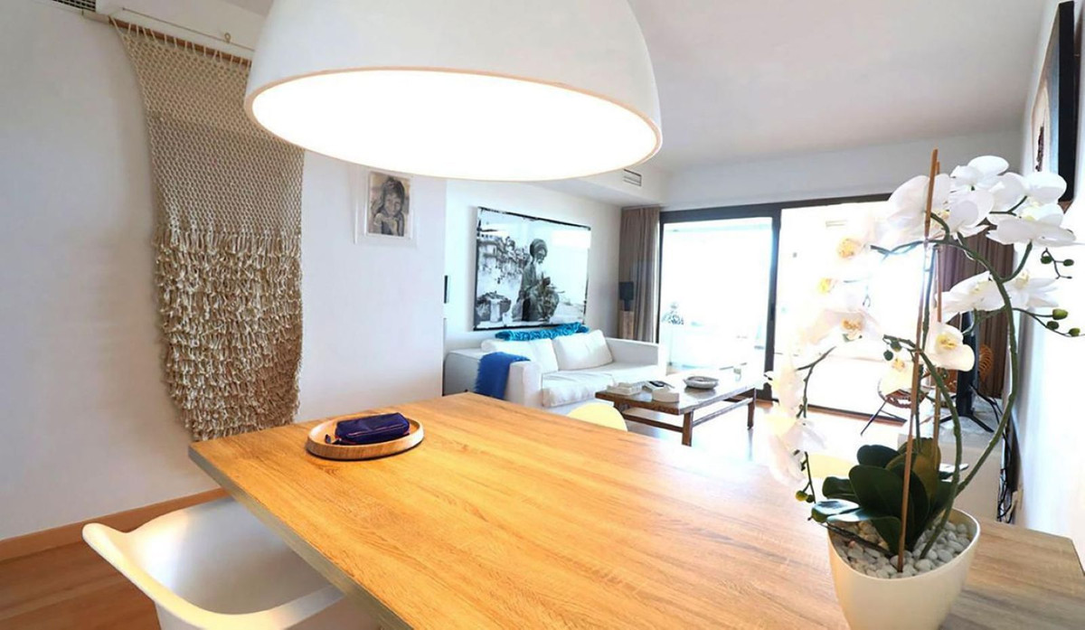 Every detail in this apartment has been taken care of with the utmost attention. The entrance opens onto a large and bright living room. This convivial space blends harmoniously with the terrace, transformed into a dining room where the sunlight creates a warm and welcoming environment. A second terrace, open and enchanting, invites you to relax admiring the panoramic views of the sea, the majestic mountains, the golf course and the swimming pool.