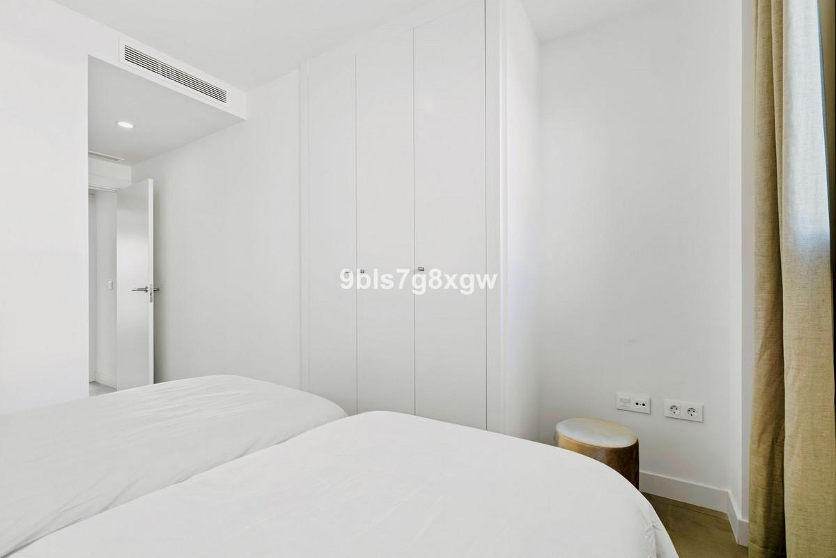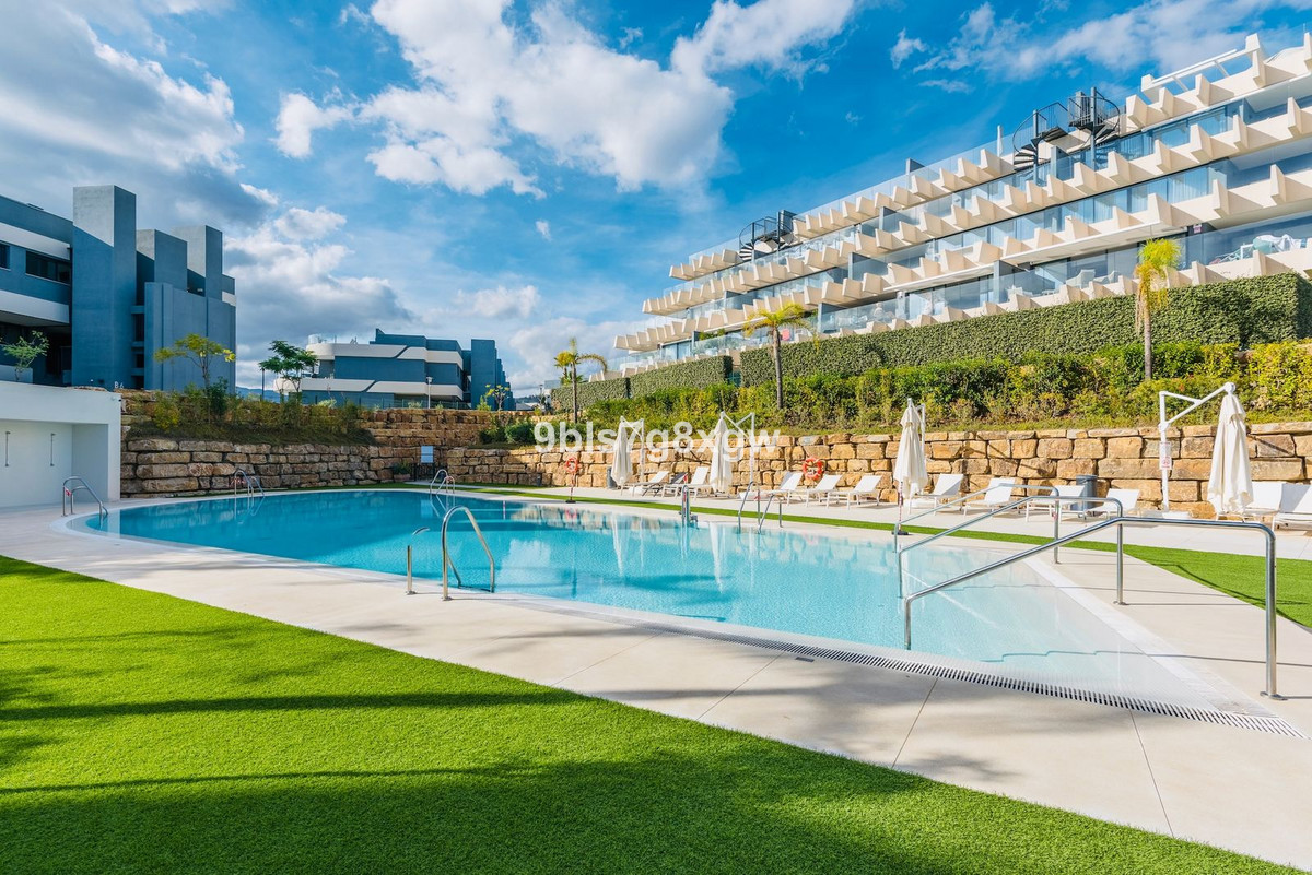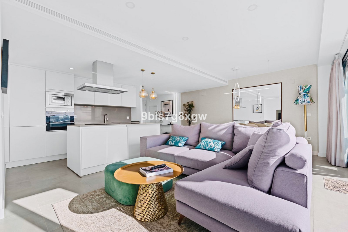The apartment stands out for its brightness and fluid layout. Large floor-to-ceiling windows create a seamless connection between indoor and outdoor spaces. The fully equipped kitchen (with separate laundry room) opens onto a spacious living-dining area, leading to a large 31m² private South-West facing terrace, partially covered: the ideal spot for al fresco dining, a quiet reading moment, or simply enjoying the panoramic views of the sea, Gibraltar and Selwo Zoo. As night falls, after watching the sunset, the view becomes truly magical.