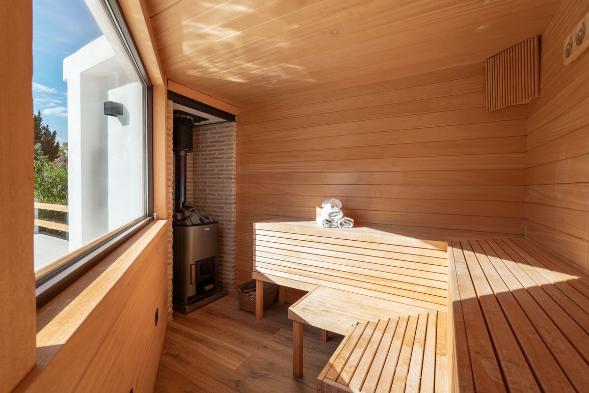 Ce qui rend cette propriété vraiment exceptionnelle, c'est son incroyable espace extérieur. Au lieu d'un jardin traditionnel, la villa offre de nombreux espaces de détente et de relaxation accueillants, entourés d'une végétation luxuriante, créant une atmosphère apaisante. À l'extérieur, vous trouverez également une piscine privée neuve, une douche extérieure attenante, une cuisine d'été entièrement équipée, un sauna et un coin salon convivial avec un foyer, idéal pour profiter du climat exceptionnel de Marbella en famille ou entre amis.