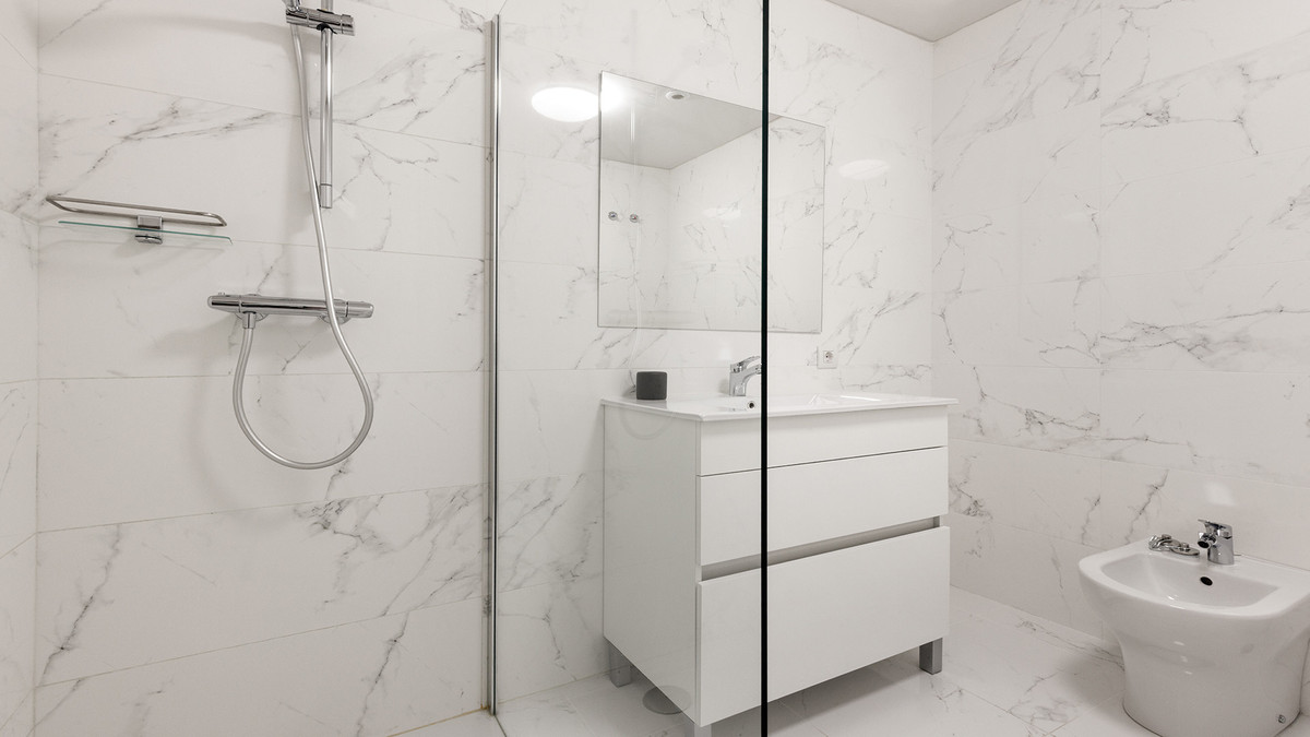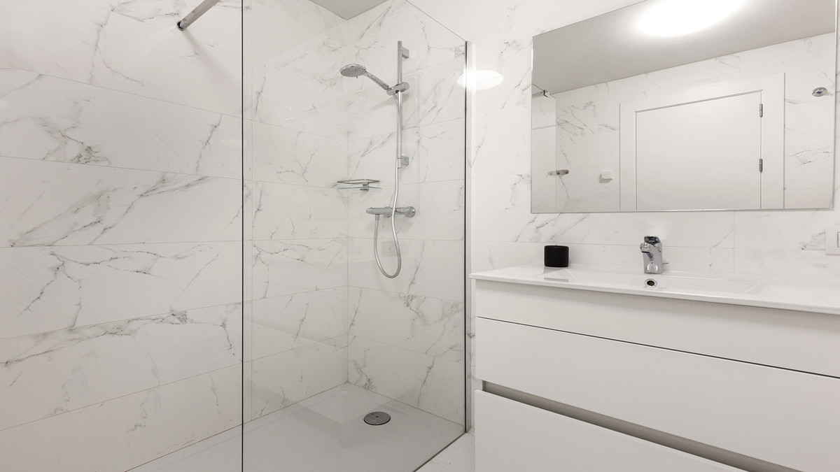 La propriété comprend deux chambres doubles confortables avec placards intégrés et deux grandes salles de bains, dont une attenante. Chaque détail a été soigneusement soigné, rendant l'appartement immédiatement habitable. Le confort moderne comprend la climatisation, des stores électriques et des panneaux solaires, apportant une touche écologique. Une place de parking privée et un débarras sont également inclus.