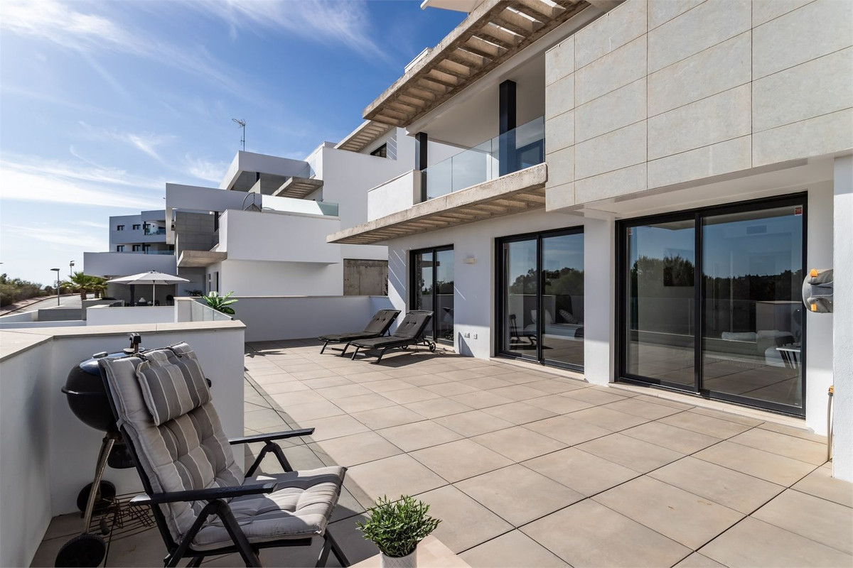 Cet appartement moderne offre un agencement bien pensé avec trois chambres spacieuses, dont une suite parentale avec salle de bains privative. Chaque chambre donne directement sur une généreuse terrasse de 80 m², idéale pour profiter du soleil matinal et d'une vue paisible sur le golf et la végétation luxuriante.